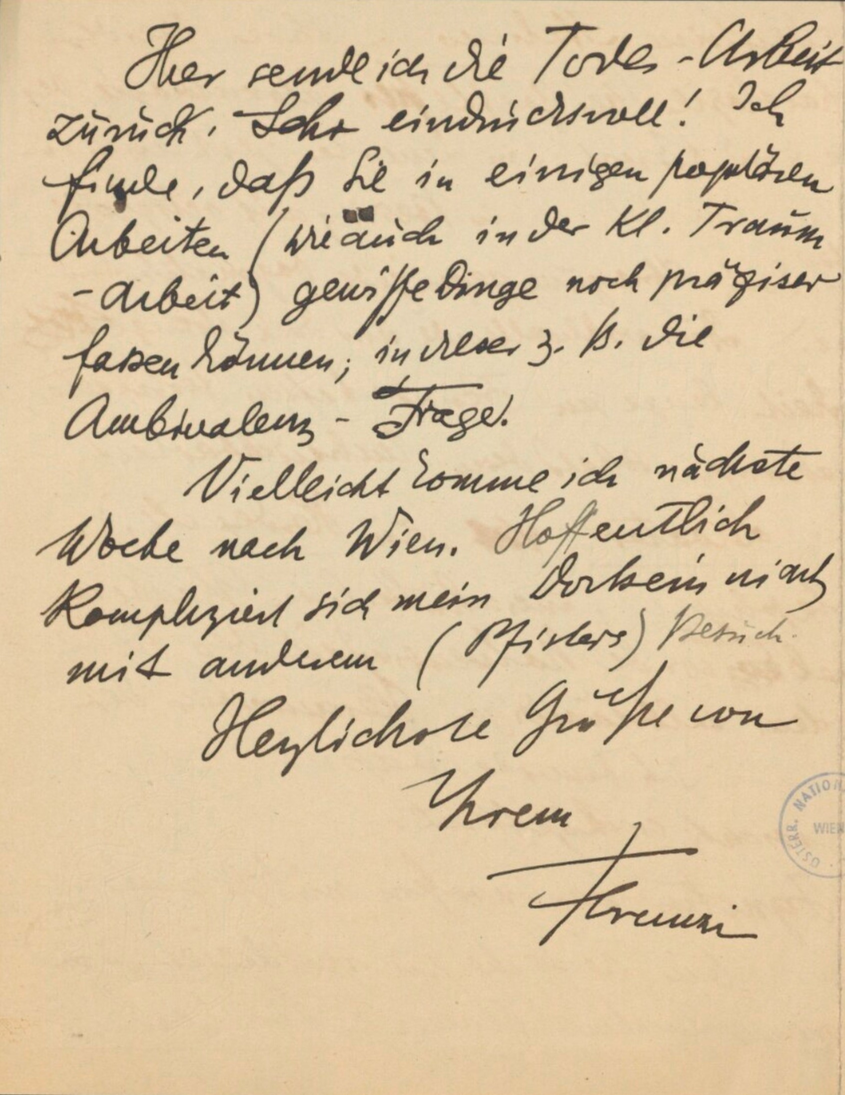 Freud, Sigmund, 1856-1939 [VerfasserIn] ; Ferenczi, Sándor, 1873-1933 [AdressatIn]