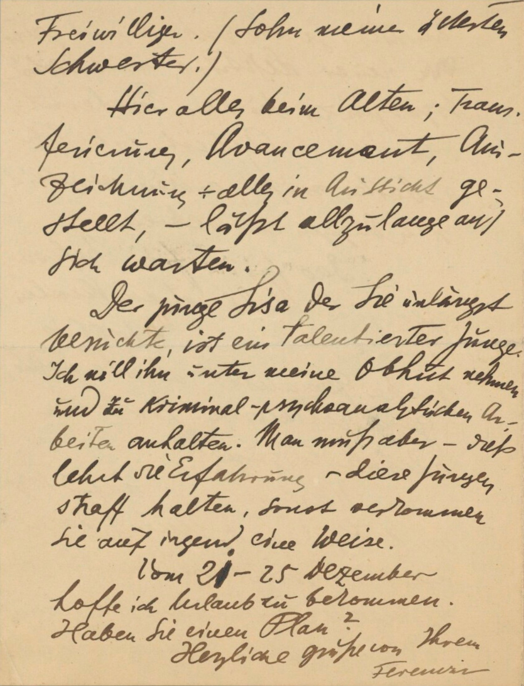 Freud, Sigmund, 1856-1939 [VerfasserIn] ; Ferenczi, Sándor, 1873-1933 [AdressatIn]