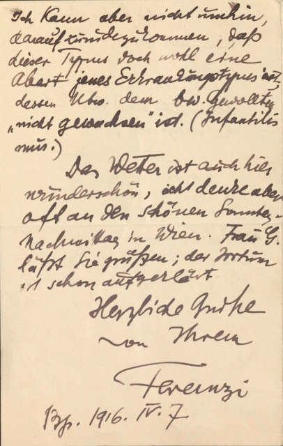 Freud, Sigmund, 1856-1939 [VerfasserIn] ; Ferenczi, Sándor, 1873-1933 [AdressatIn]