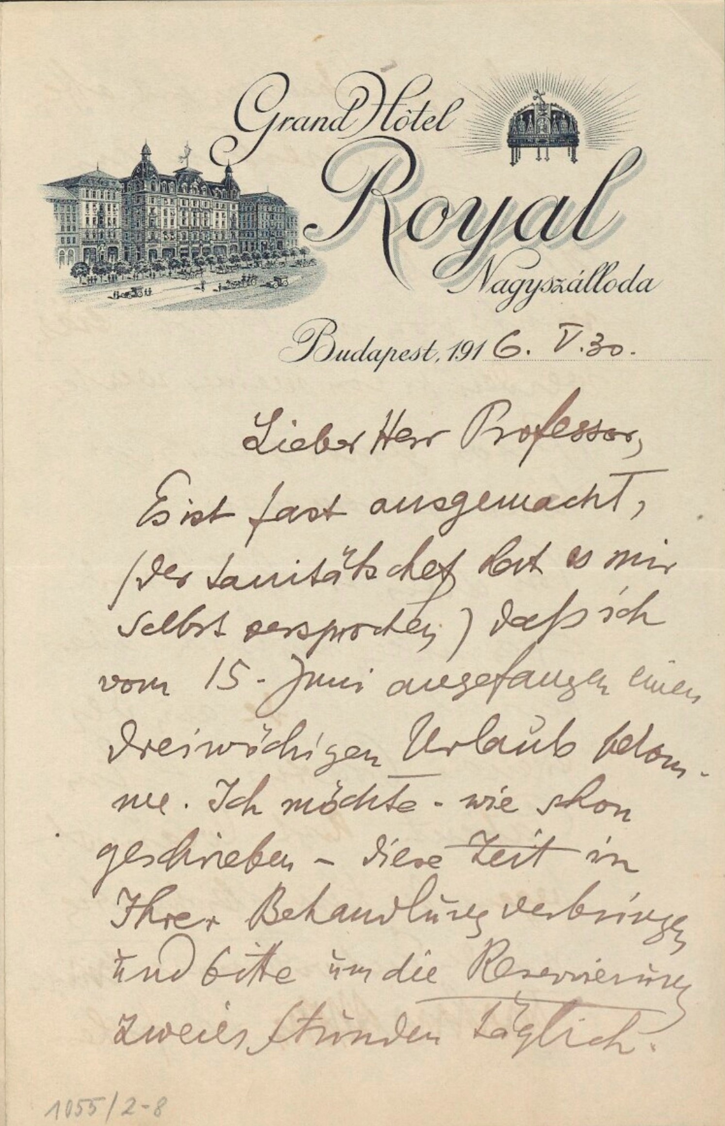 Nagyszálloda Budapest, 191A6. V.30.