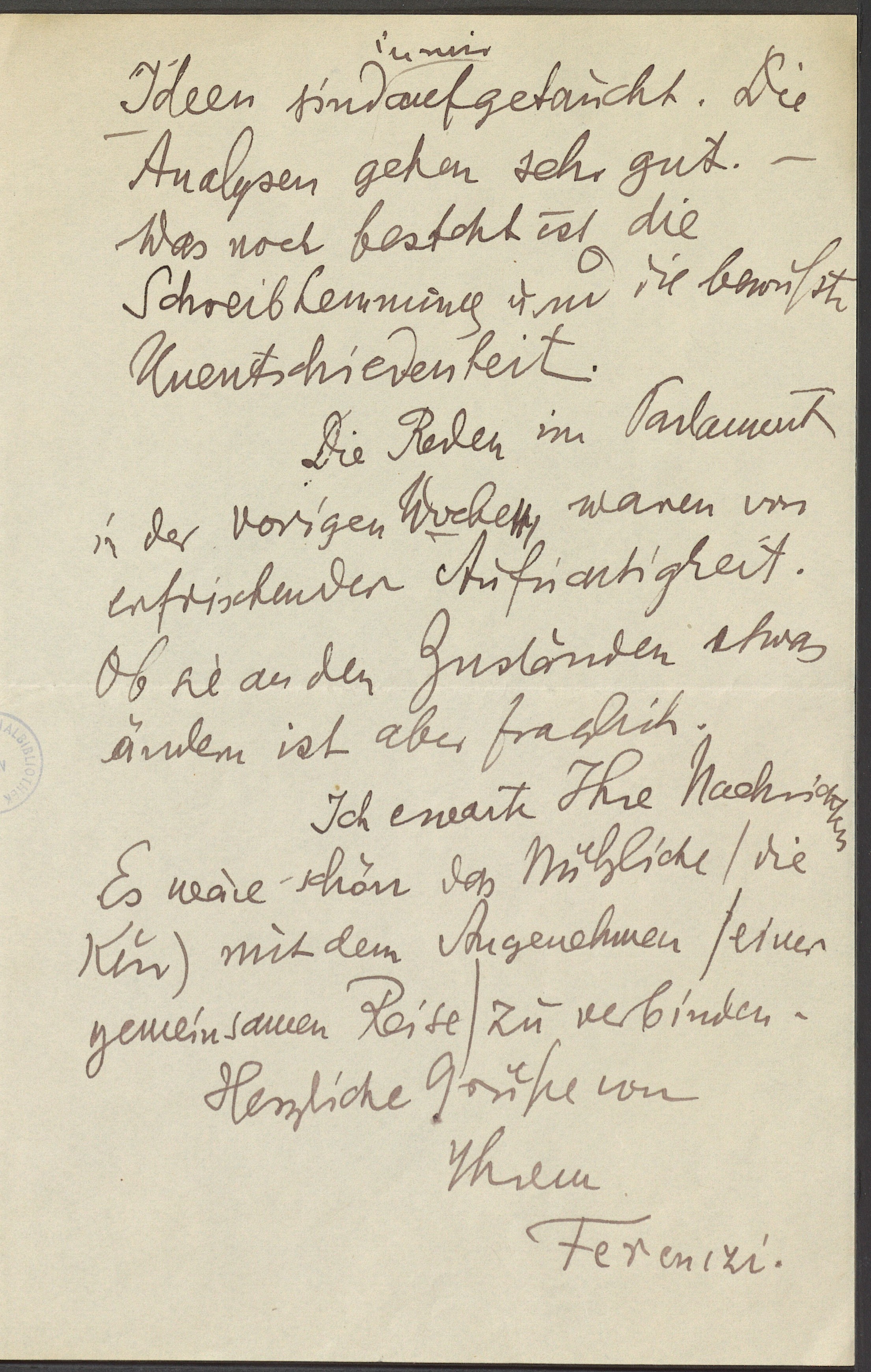 Freud, Sigmund, 1856-1939 [VerfasserIn] ; Ferenczi, Sándor, 1873-1933 [AdressatIn]