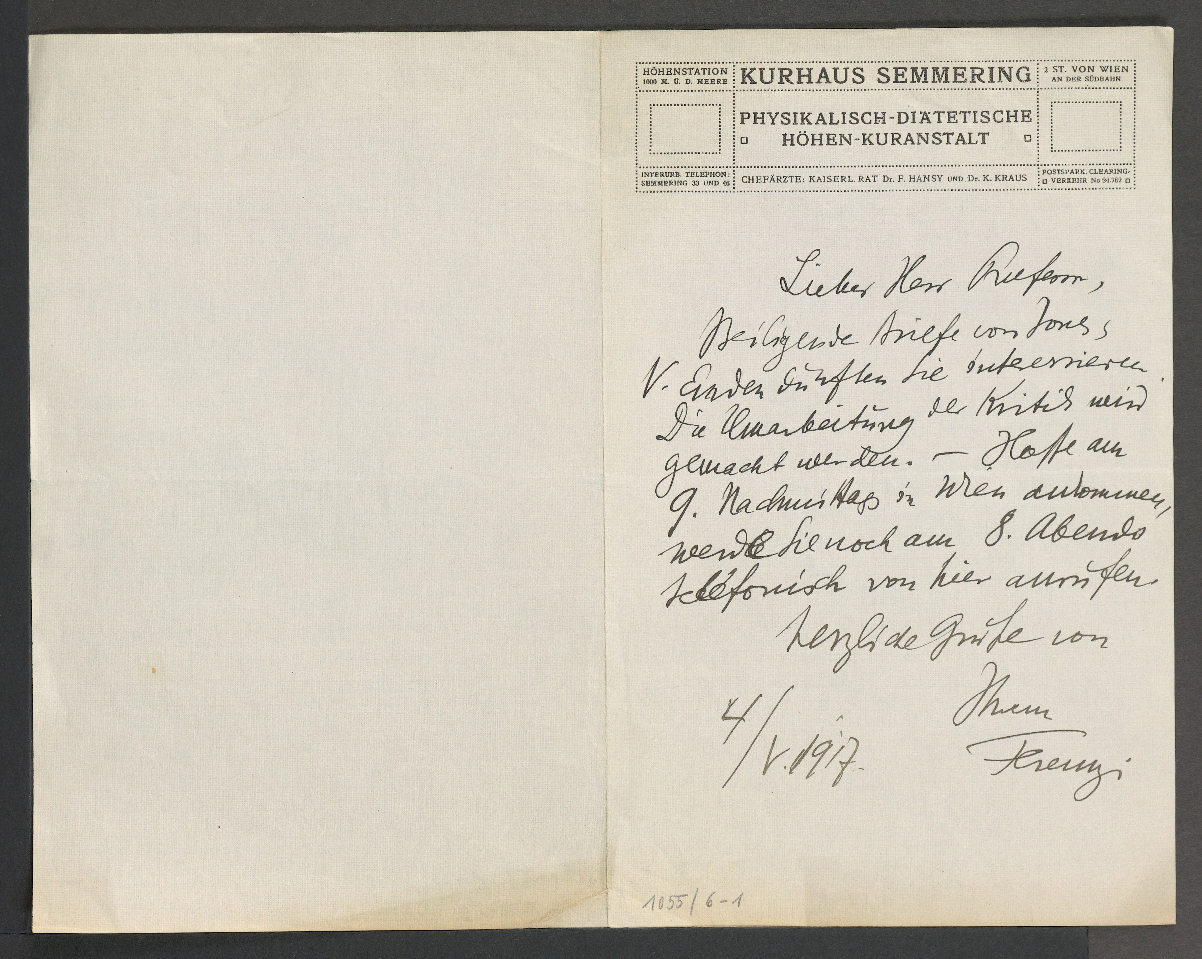 Freud, Sigmund, 1856-1939 [VerfasserIn] ; Ferenczi, Sándor, 1873-1933 [AdressatIn]