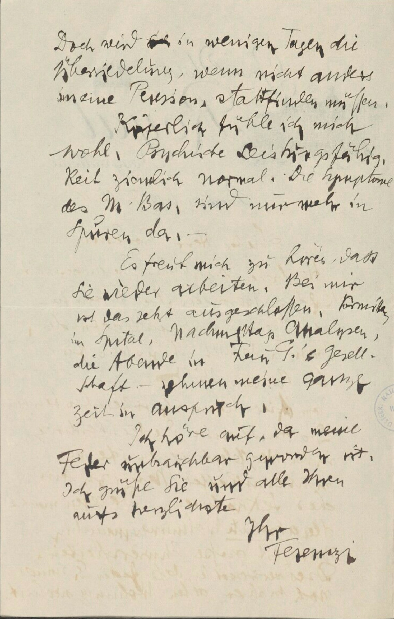 Freud, Sigmund, 1856-1939 [VerfasserIn] ; Ferenczi, Sándor, 1873-1933 [AdressatIn]