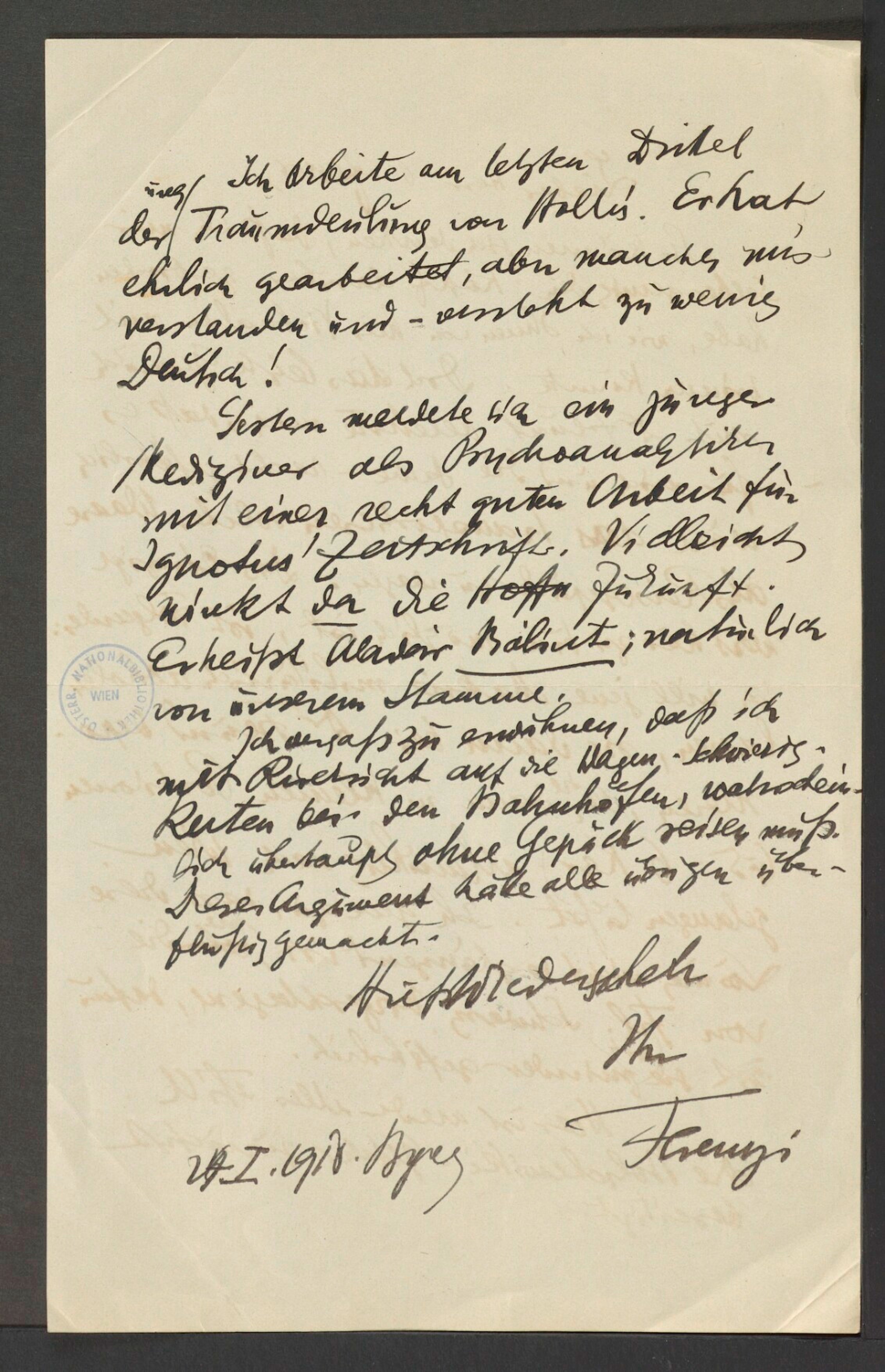 Freud, Sigmund, 1856-1939 [VerfasserIn] ; Ferenczi, Sándor, 1873-1933 [AdressatIn]