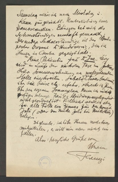 Freud, Sigmund, 1856-1939 [VerfasserIn] ; Ferenczi, Sándor, 1873-1933 [AdressatIn]
