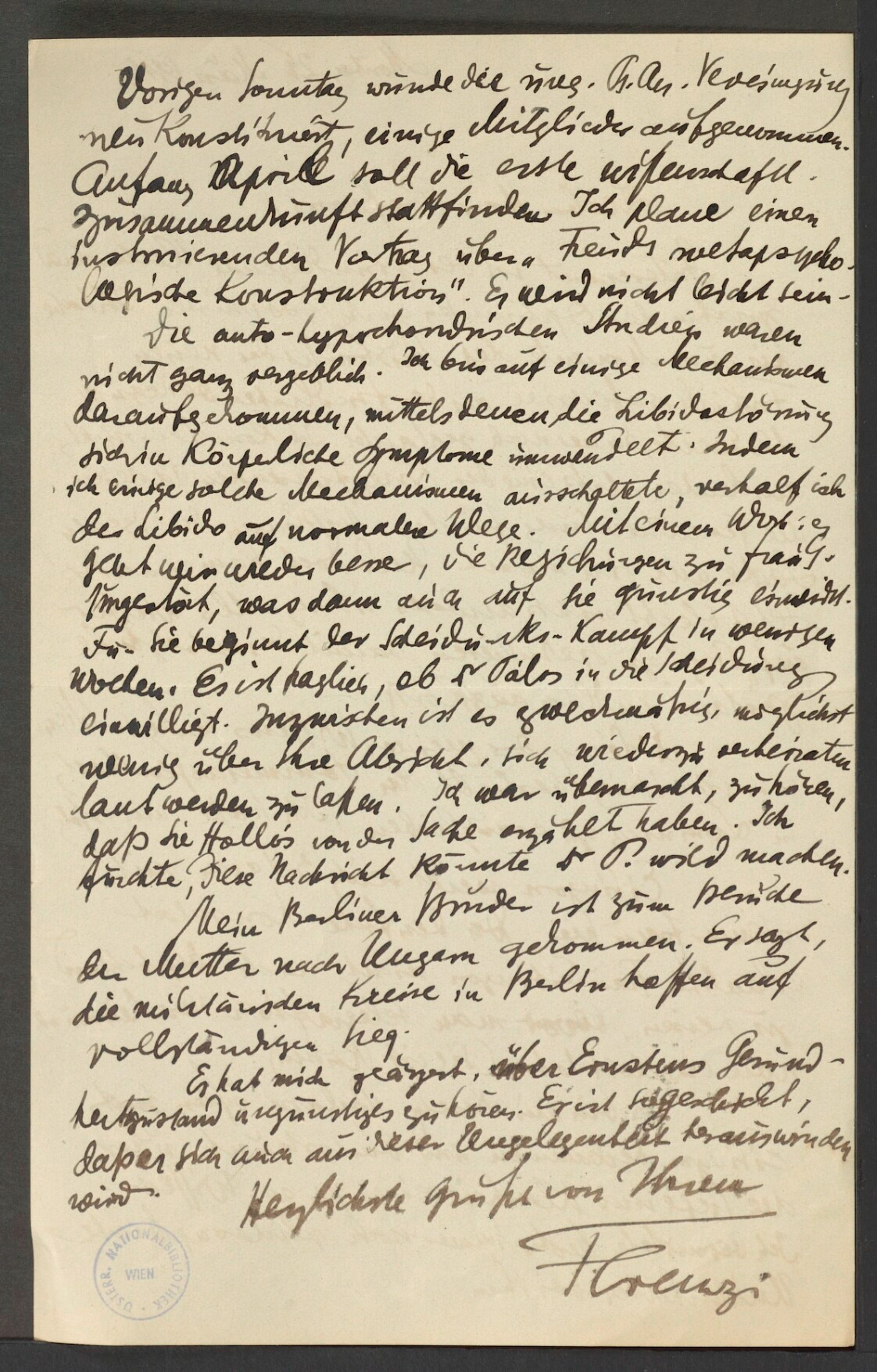 Freud, Sigmund, 1856-1939 [VerfasserIn] ; Ferenczi, Sándor, 1873-1933 [AdressatIn]