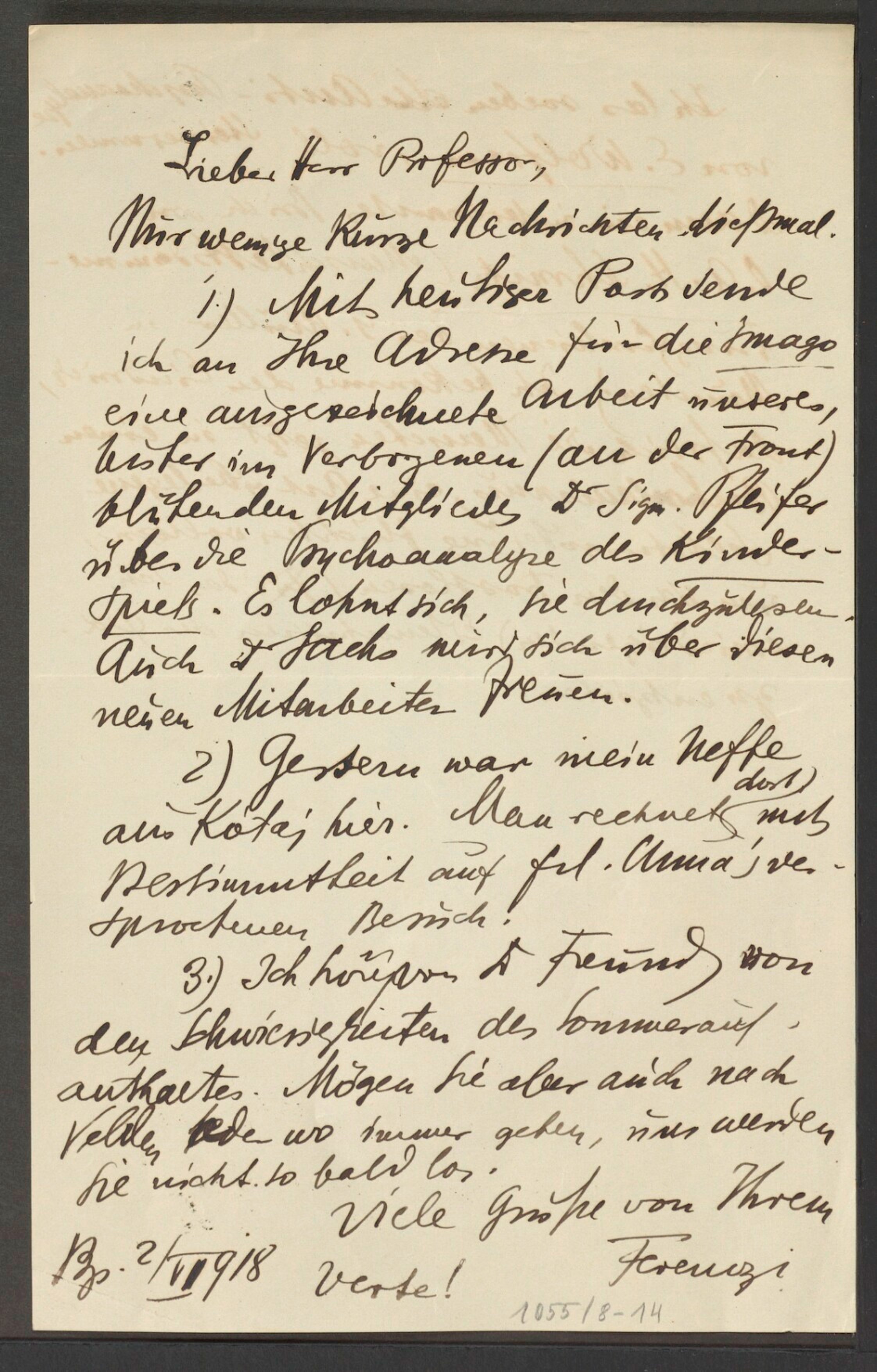 Freud, Sigmund, 1856-1939 [VerfasserIn] ; Ferenczi, Sándor, 1873-1933 [AdressatIn]