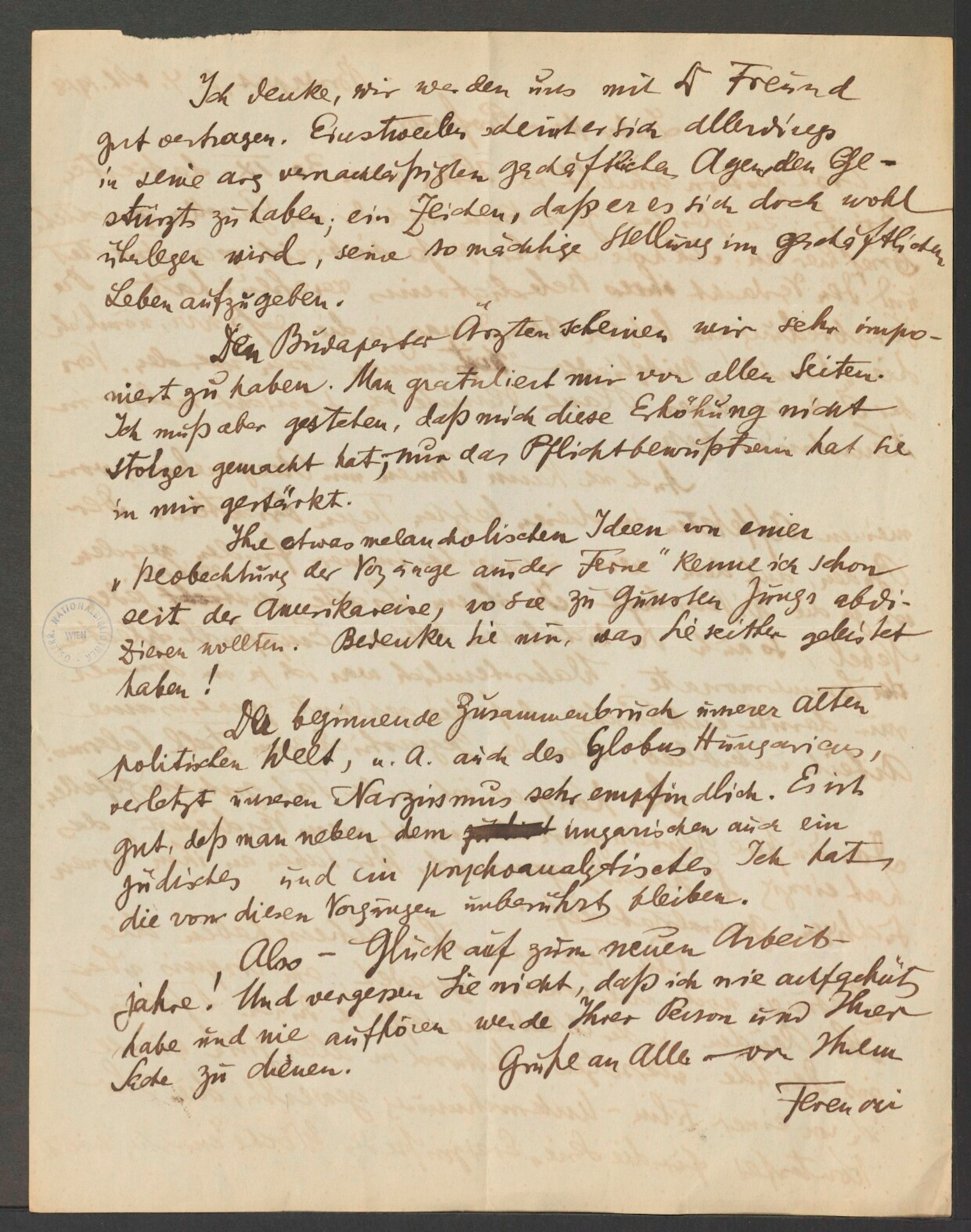 Freud, Sigmund, 1856-1939 [VerfasserIn] ; Ferenczi, Sándor, 1873-1933 [AdressatIn]