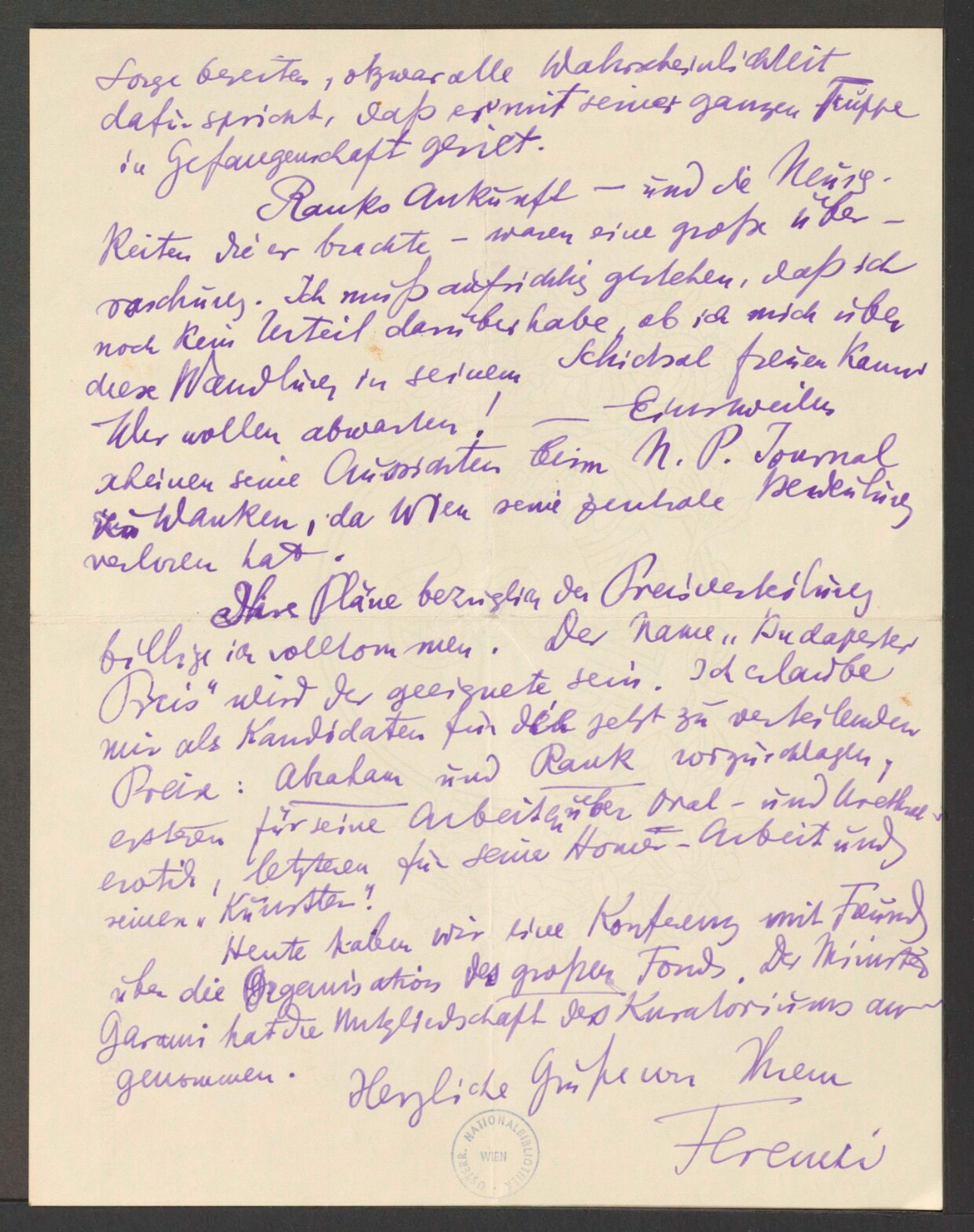 Freud, Sigmund, 1856-1939 [VerfasserIn] ; Ferenczi, Sándor, 1873-1933 [AdressatIn]