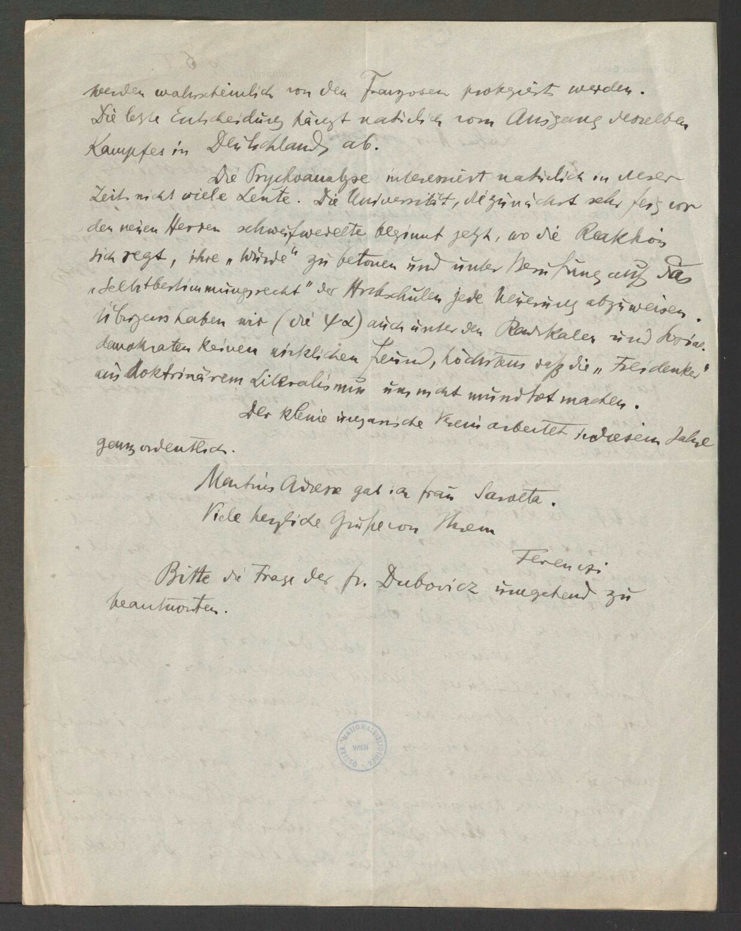 Freud, Sigmund, 1856-1939 [VerfasserIn] ; Ferenczi, Sándor, 1873-1933 [AdressatIn]