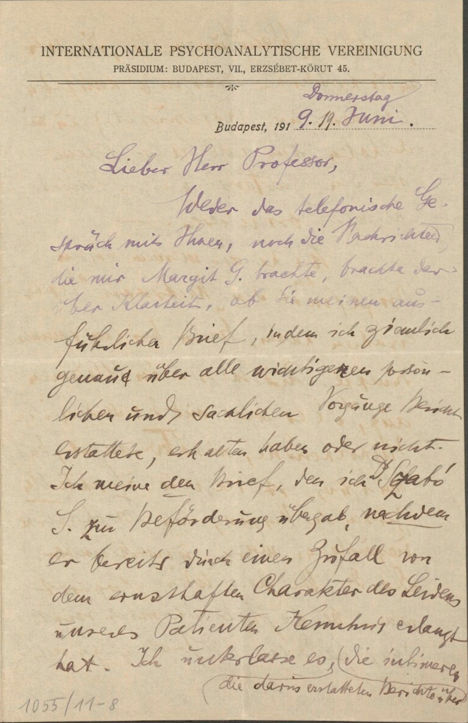 Freud, Sigmund, 1856-1939 [VerfasserIn] ; Ferenczi, Sándor, 1873-1933 [AdressatIn]