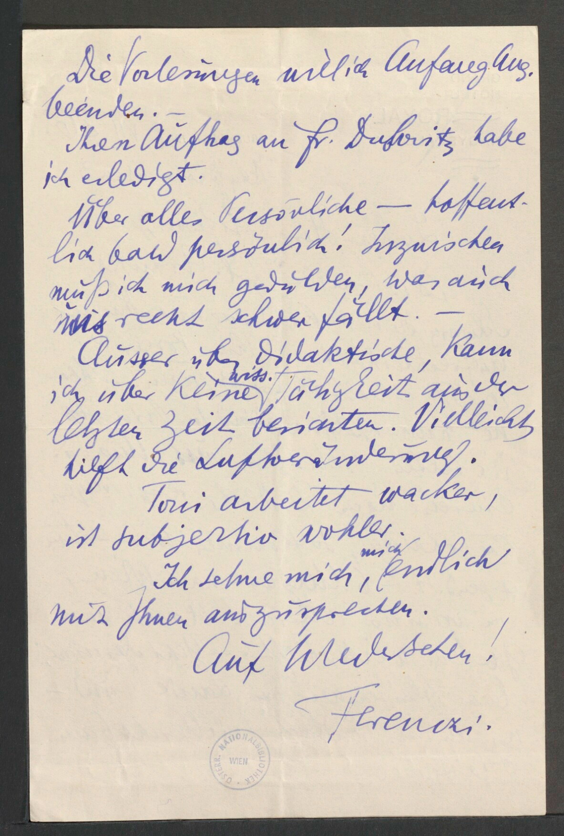 Freud, Sigmund, 1856-1939 [VerfasserIn] ; Ferenczi, Sándor, 1873-1933 [AdressatIn]