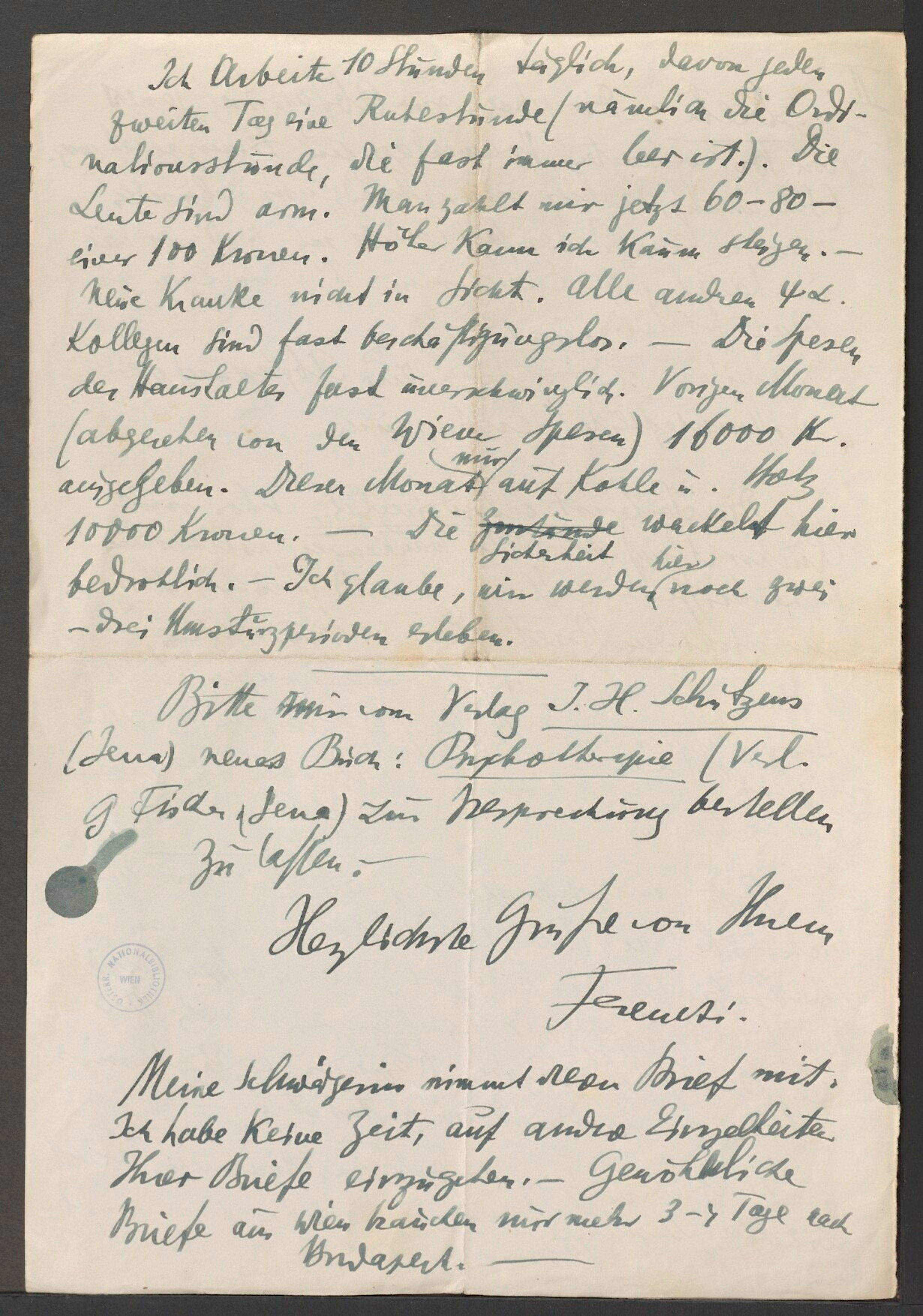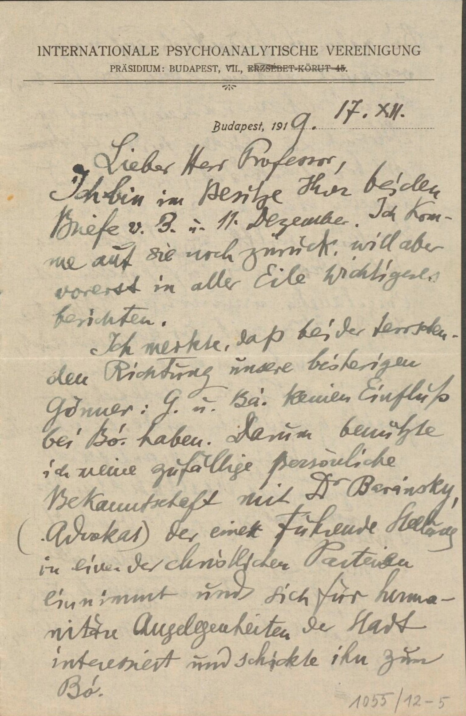Freud, Sigmund, 1856-1939 [VerfasserIn] ; Ferenczi, Sándor, 1873-1933 [AdressatIn]
