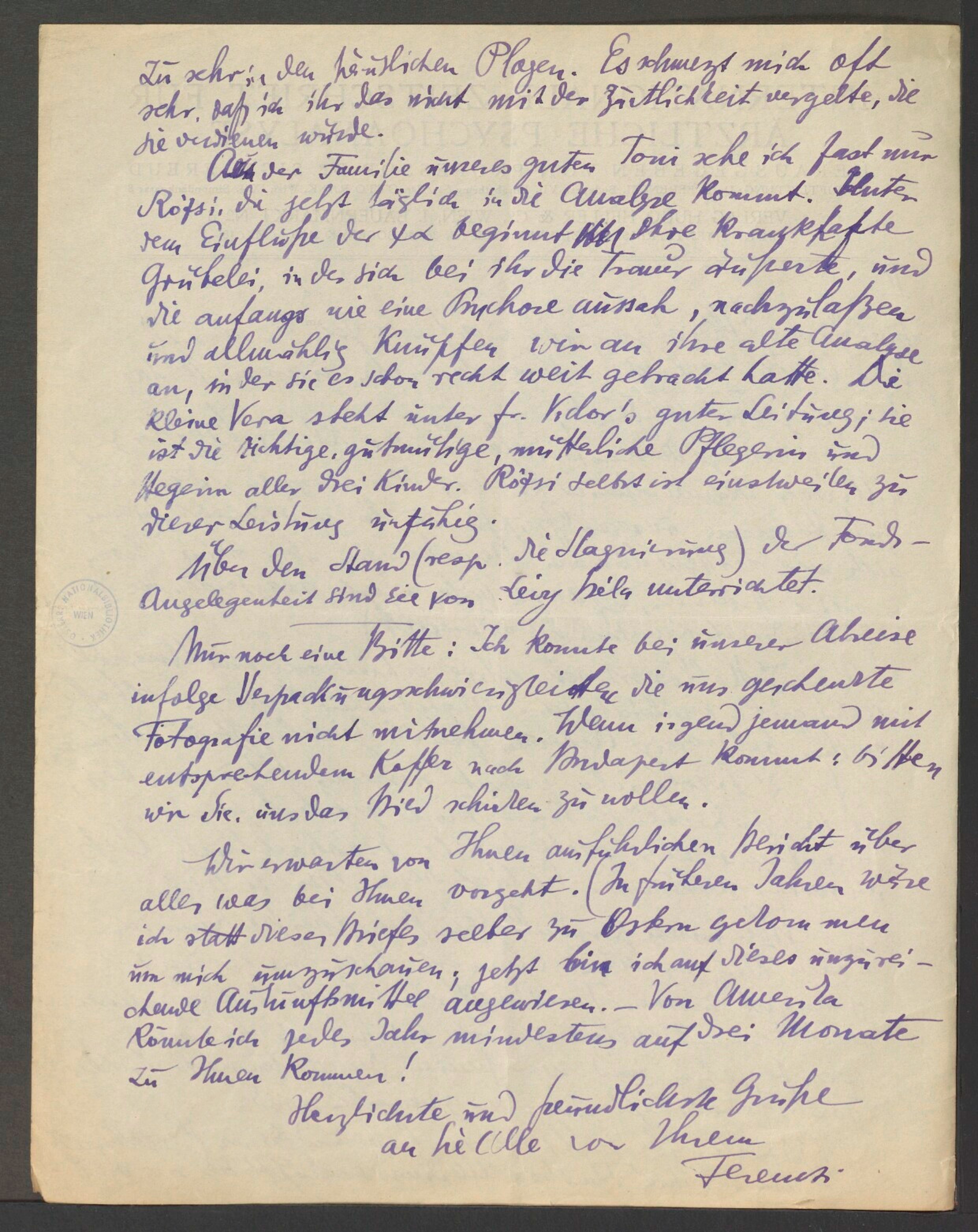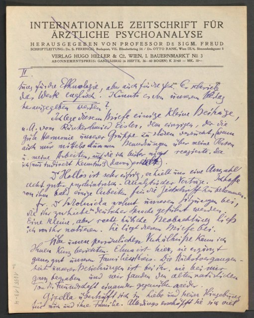 Freud, Sigmund, 1856-1939 [VerfasserIn] ; Ferenczi, Sándor, 1873-1933 [AdressatIn]