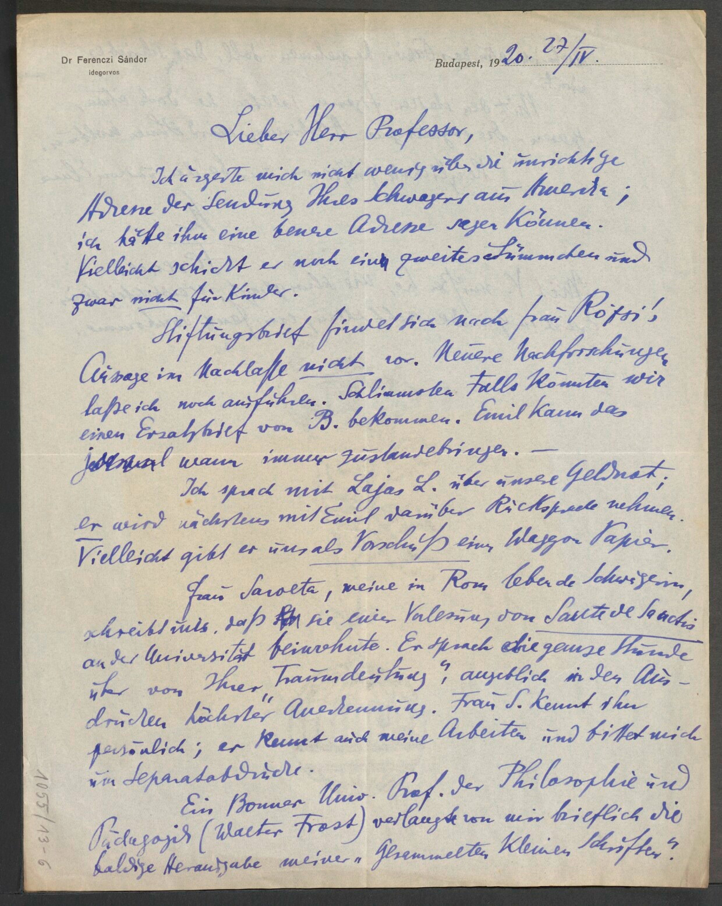 Freud, Sigmund, 1856-1939 [VerfasserIn] ; Ferenczi, Sándor, 1873-1933 [AdressatIn]