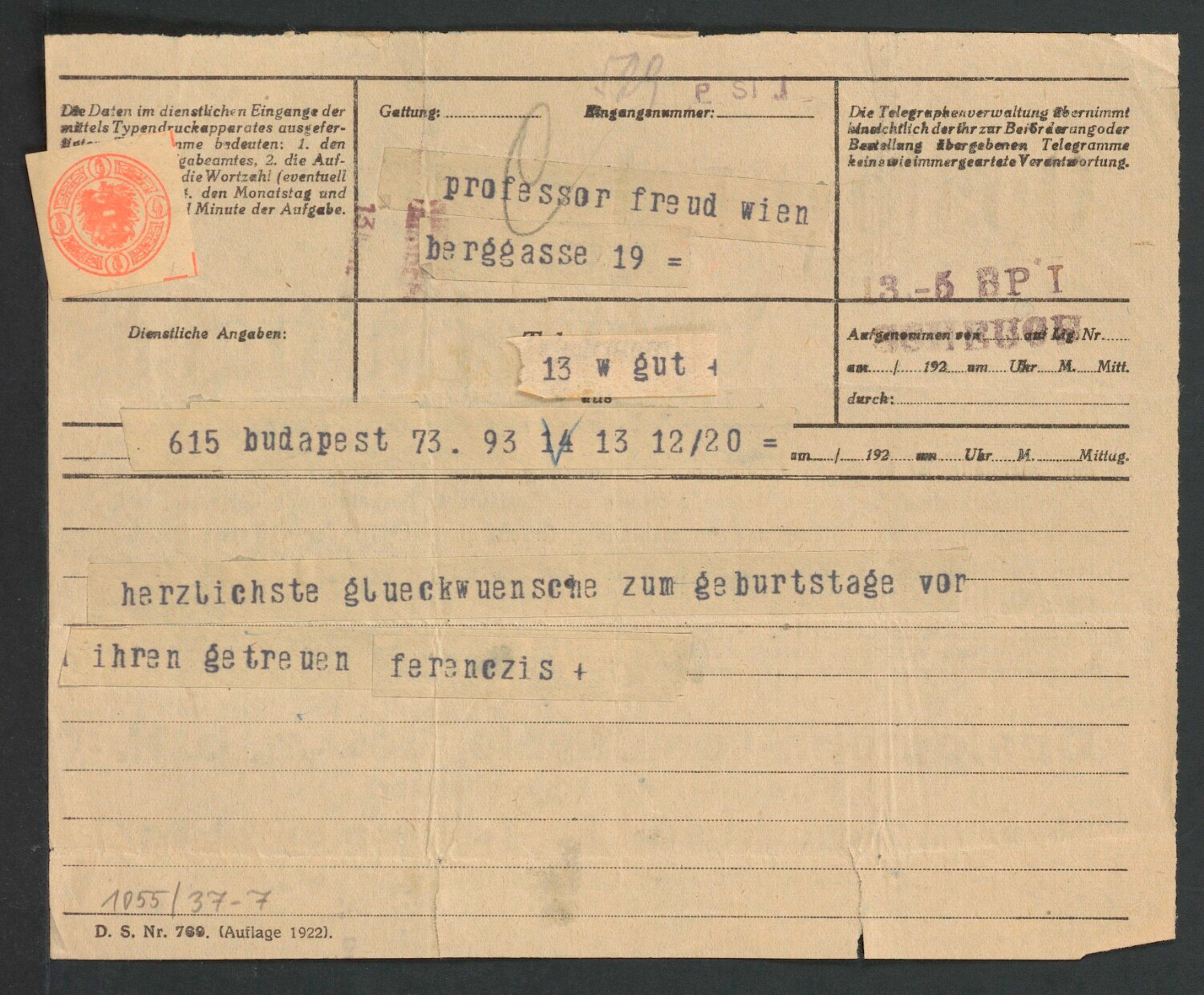 Freud, Sigmund, 1856-1939 [VerfasserIn] ; Ferenczi, Sándor, 1873-1933 [AdressatIn]