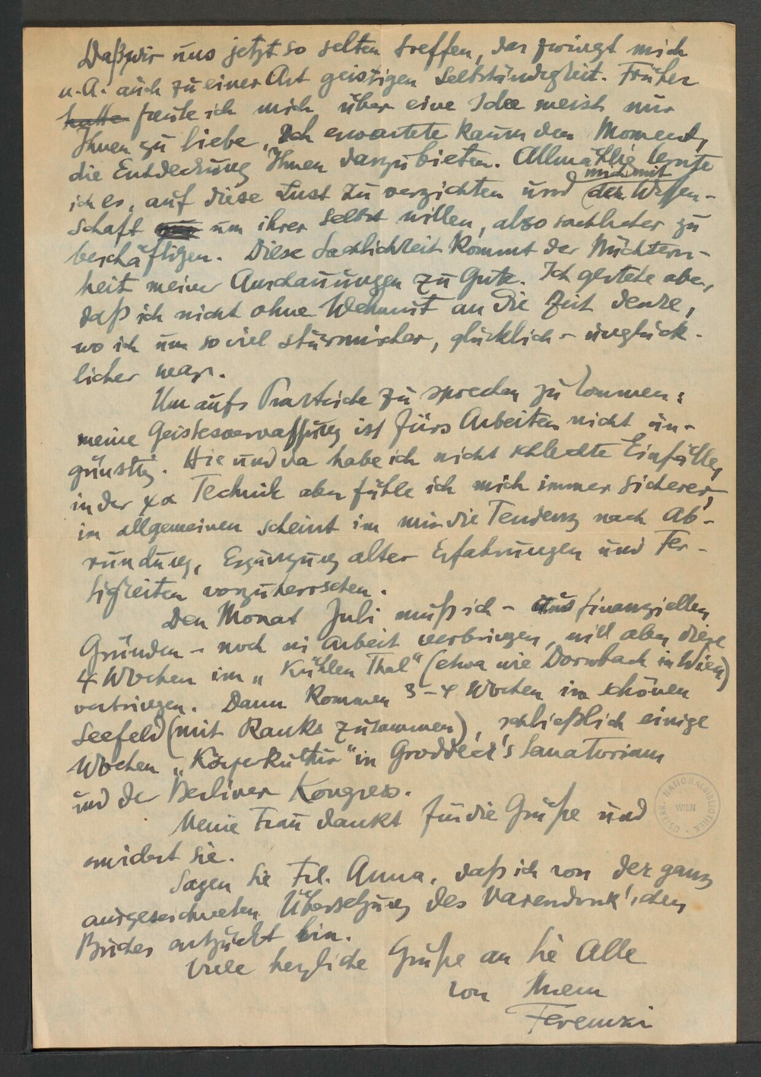 Freud, Sigmund, 1856-1939 [VerfasserIn] ; Ferenczi, Sándor, 1873-1933 [AdressatIn]