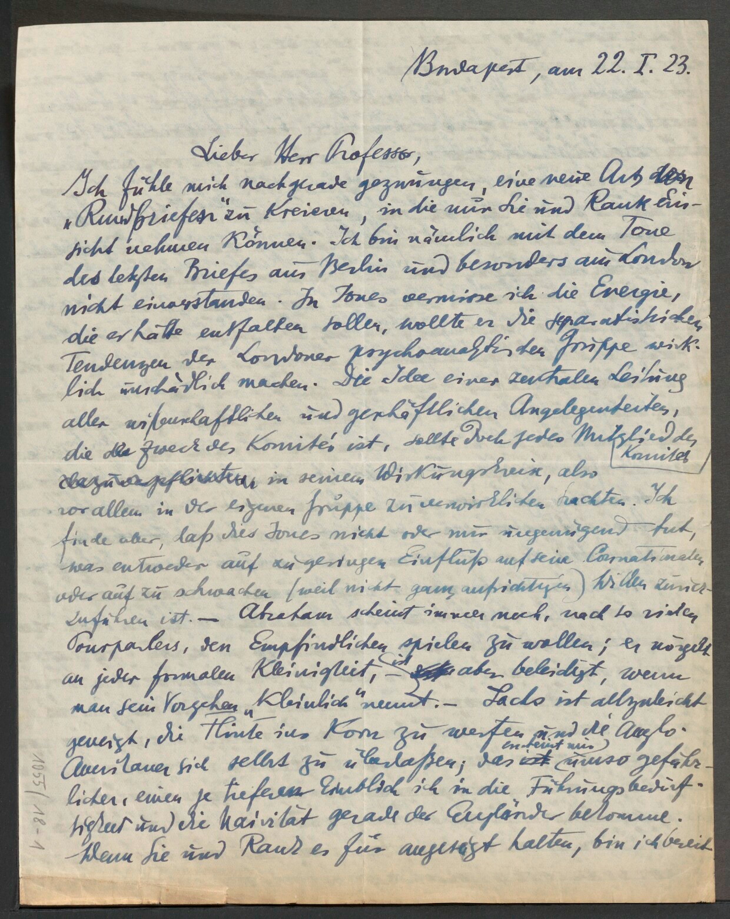 Freud, Sigmund, 1856-1939 [VerfasserIn] ; Ferenczi, Sándor, 1873-1933 [AdressatIn]