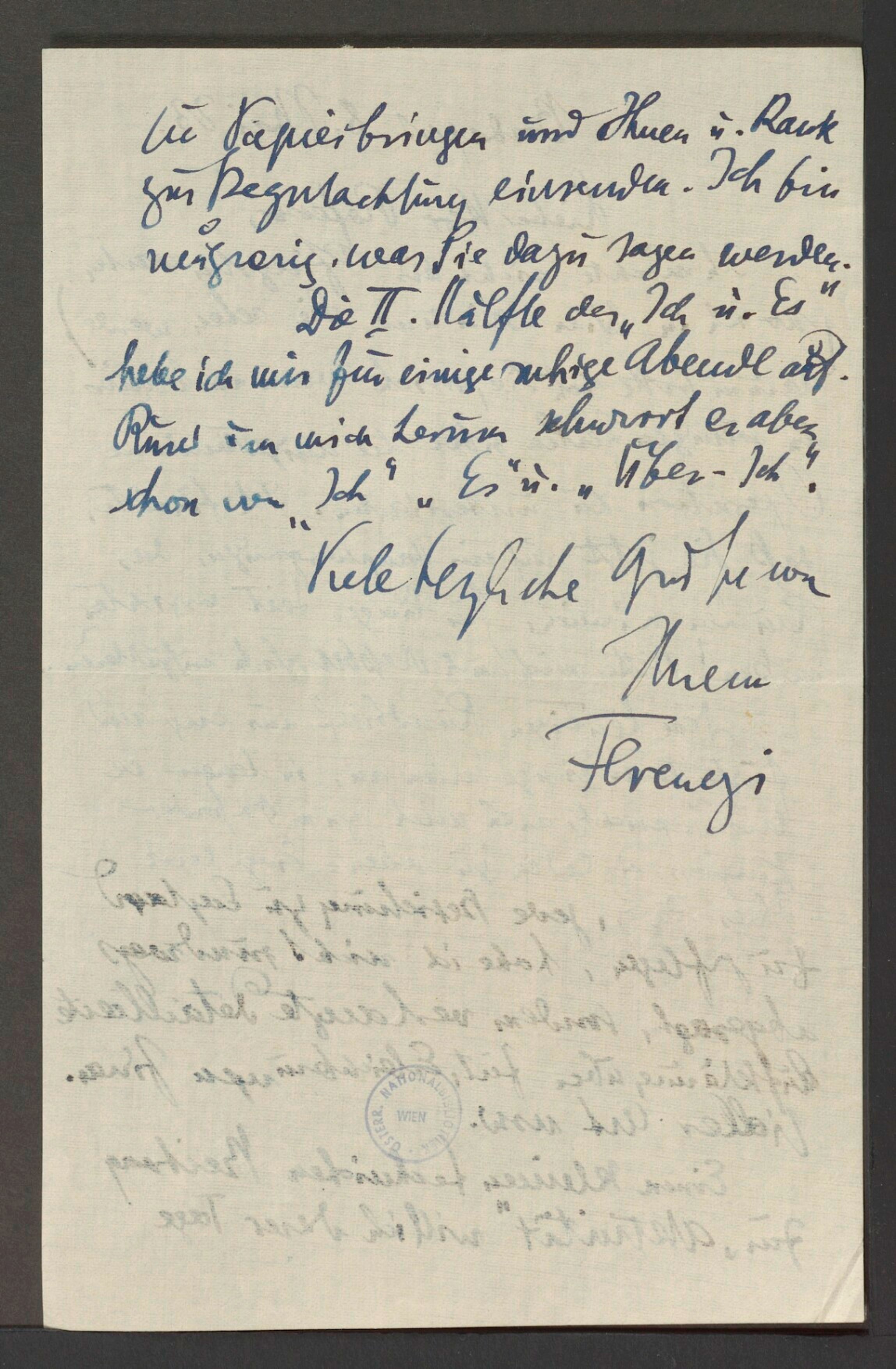 Freud, Sigmund, 1856-1939 [VerfasserIn] ; Ferenczi, Sándor, 1873-1933 [AdressatIn]