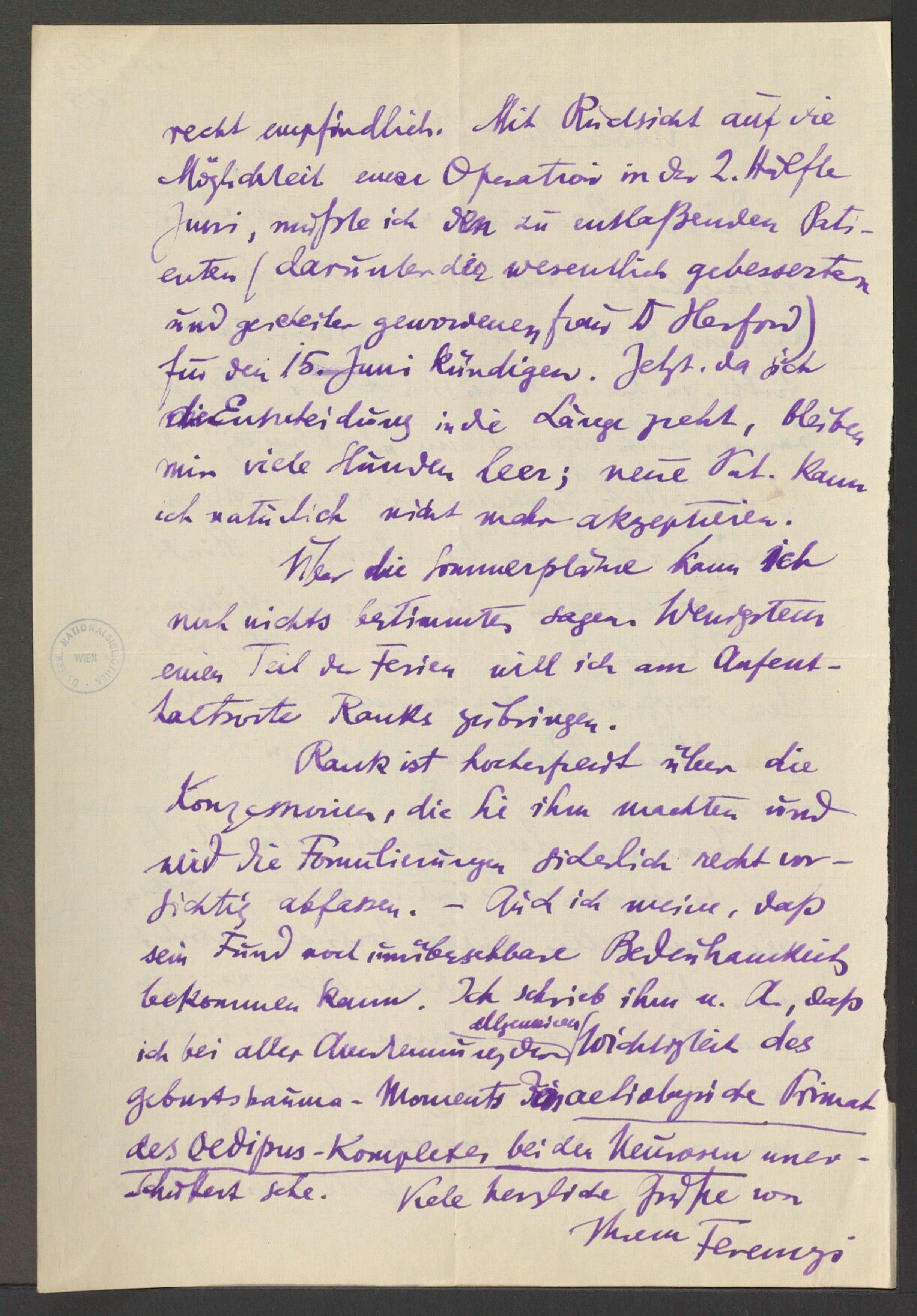 Freud, Sigmund, 1856-1939 [VerfasserIn] ; Ferenczi, Sándor, 1873-1933 [AdressatIn]