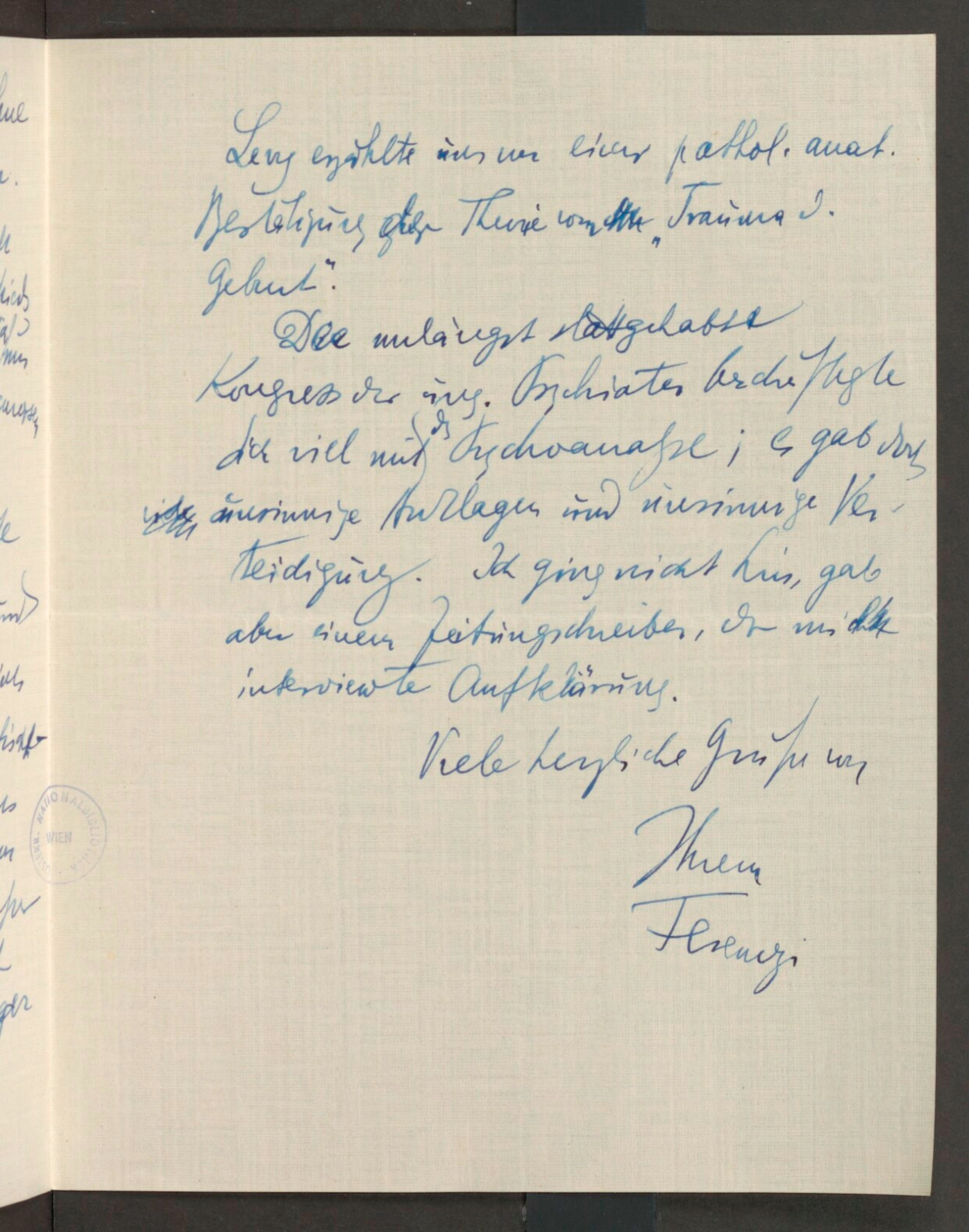 Freud, Sigmund, 1856-1939 [VerfasserIn] ; Ferenczi, Sándor, 1873-1933 [AdressatIn]