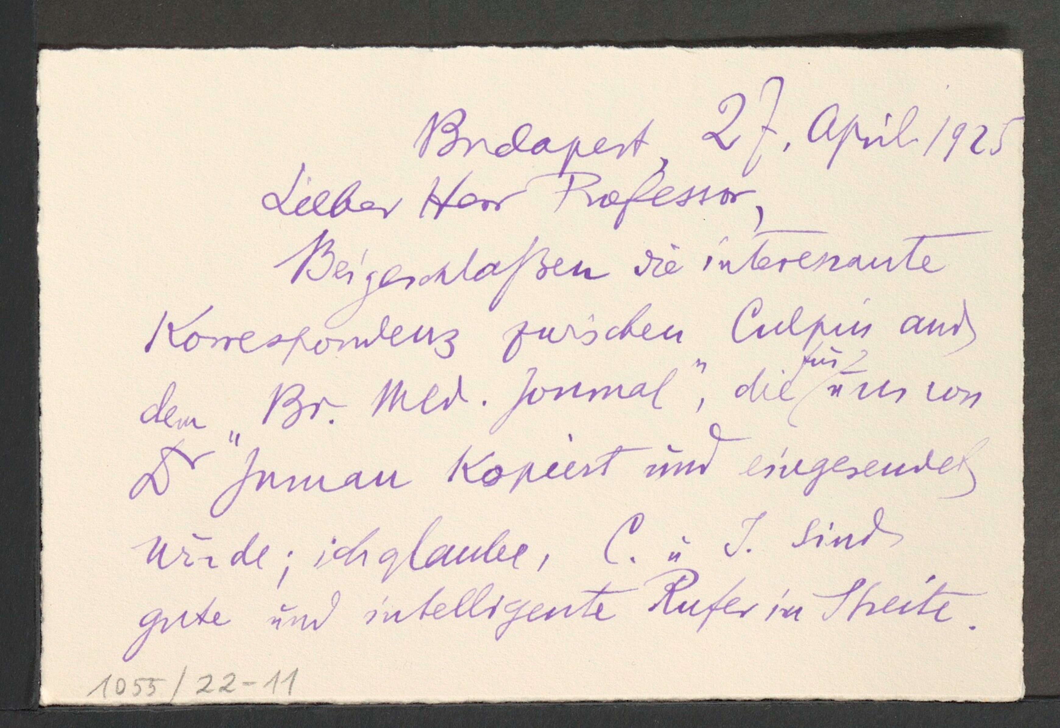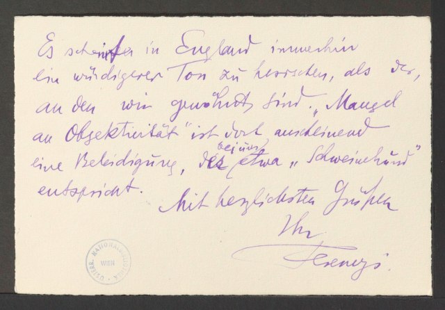 Freud, Sigmund, 1856-1939 [VerfasserIn] ; Ferenczi, Sándor, 1873-1933 [AdressatIn]