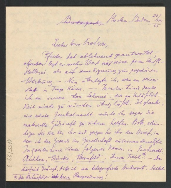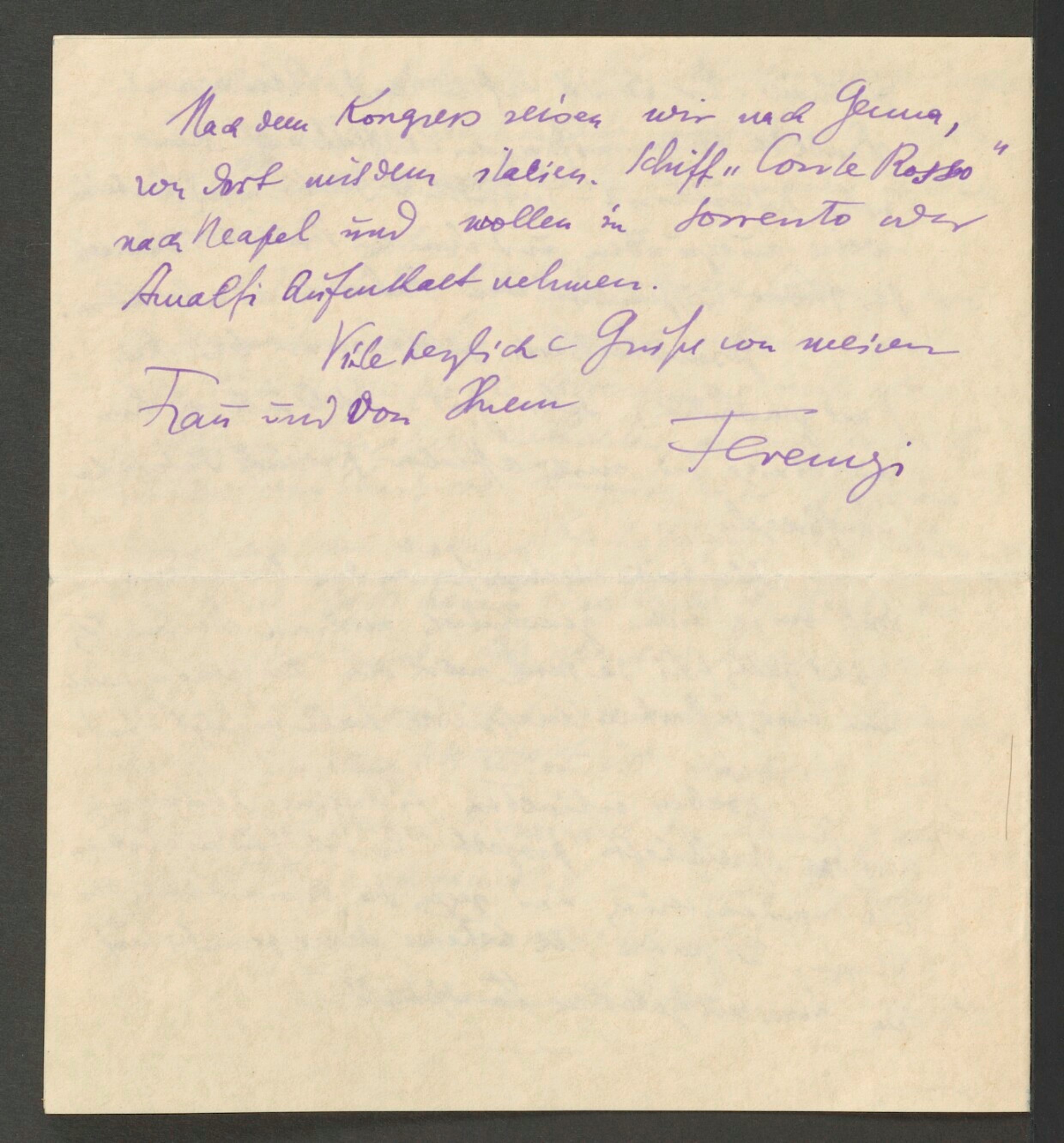 Freud, Sigmund, 1856-1939 [VerfasserIn] ; Ferenczi, Sándor, 1873-1933 [AdressatIn]