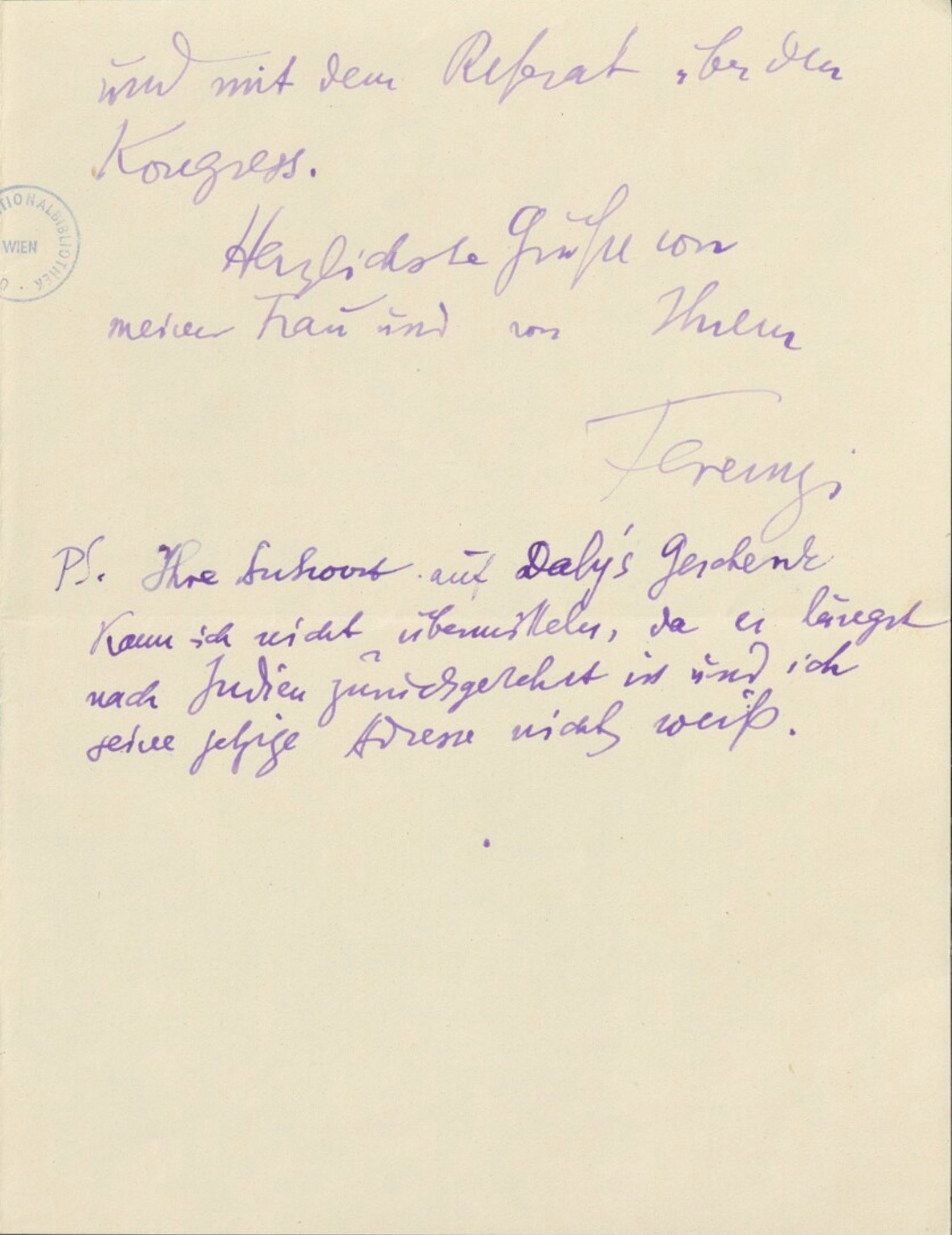 Freud, Sigmund, 1856-1939 [VerfasserIn] ; Ferenczi, Sándor, 1873-1933 [AdressatIn]