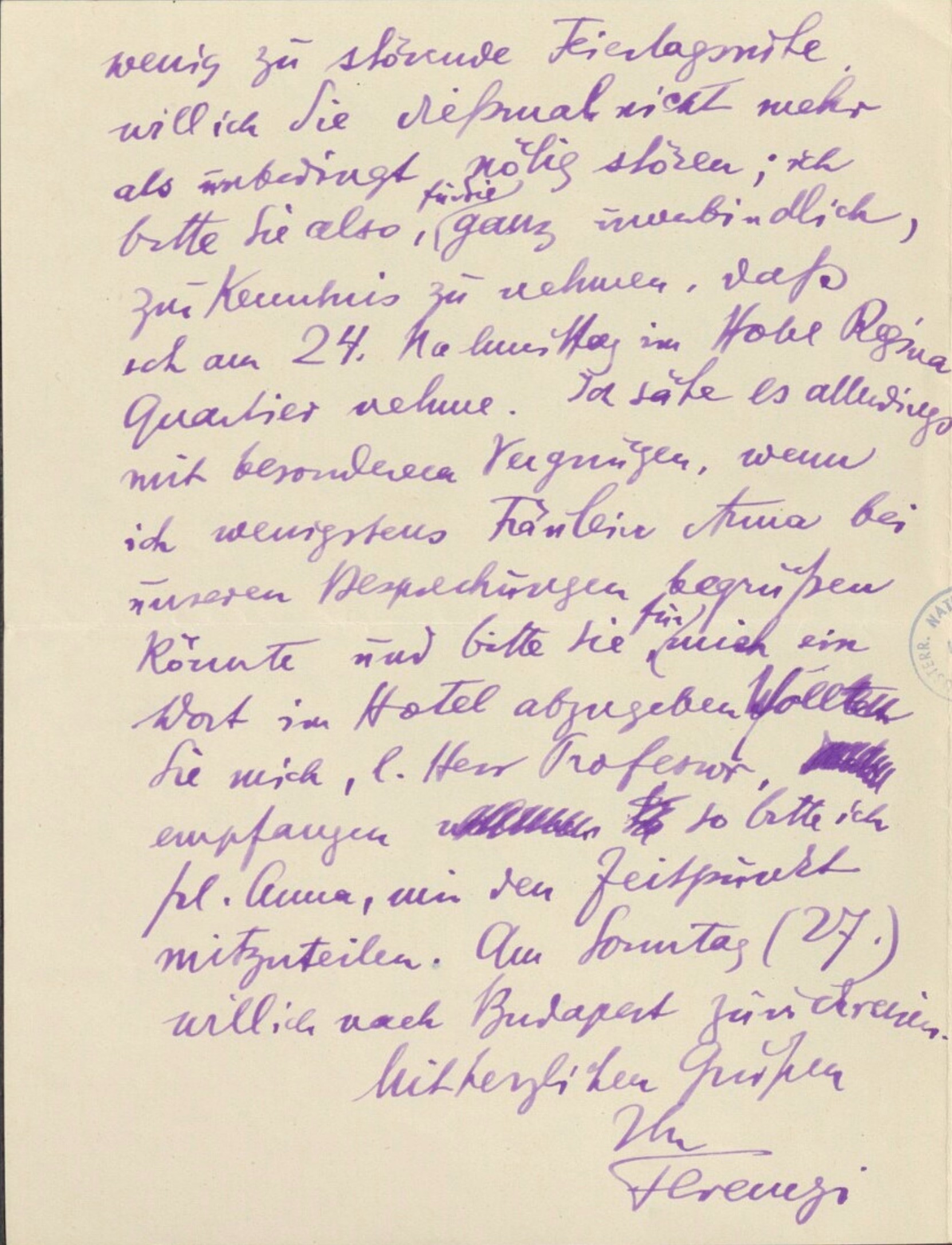 Freud, Sigmund, 1856-1939 [VerfasserIn] ; Ferenczi, Sándor, 1873-1933 [AdressatIn]