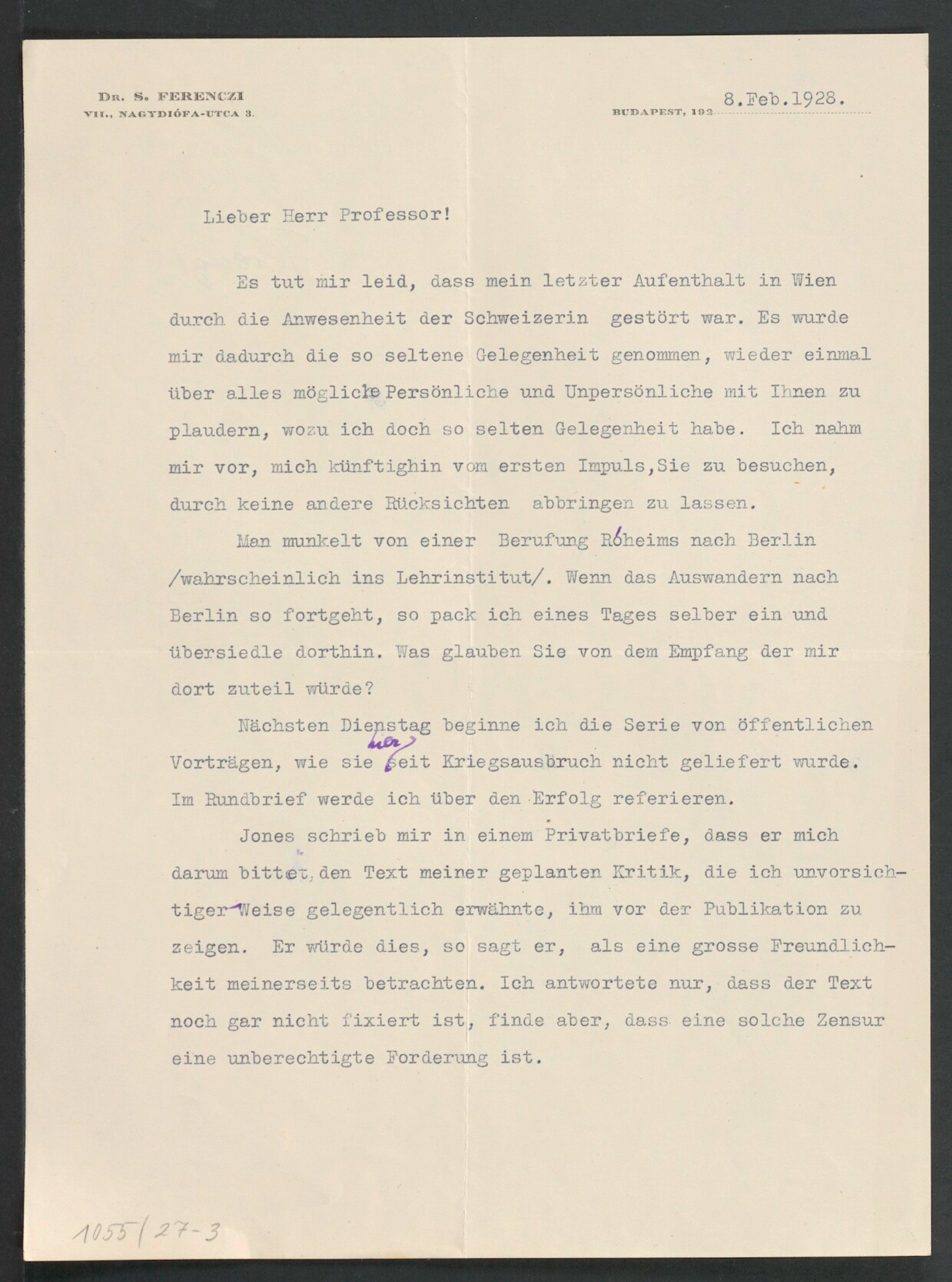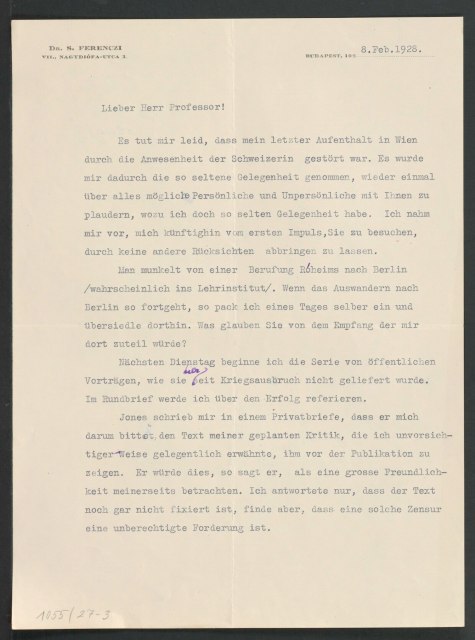 Freud, Sigmund, 1856-1939 [VerfasserIn] ; Ferenczi, Sándor, 1873-1933 [AdressatIn]