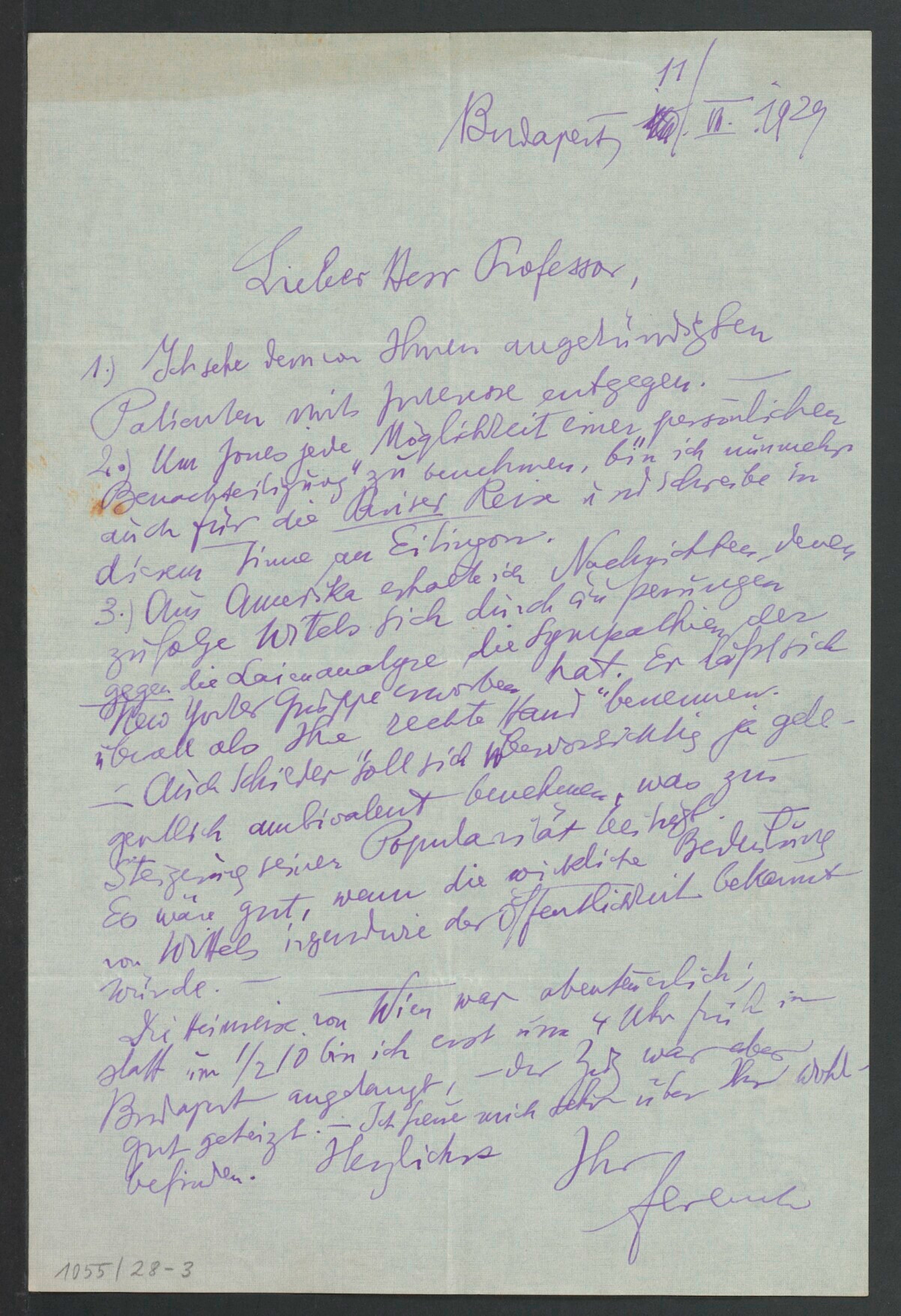 Freud, Sigmund, 1856-1939 [VerfasserIn] ; Ferenczi, Sándor, 1873-1933 [AdressatIn]