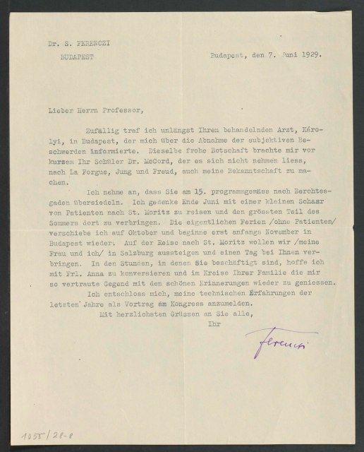 Freud, Sigmund, 1856-1939 [VerfasserIn] ; Ferenczi, Sándor, 1873-1933 [AdressatIn]