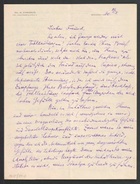 Freud, Sigmund, 1856-1939 [VerfasserIn] ; Ferenczi, Sándor, 1873-1933 [AdressatIn]