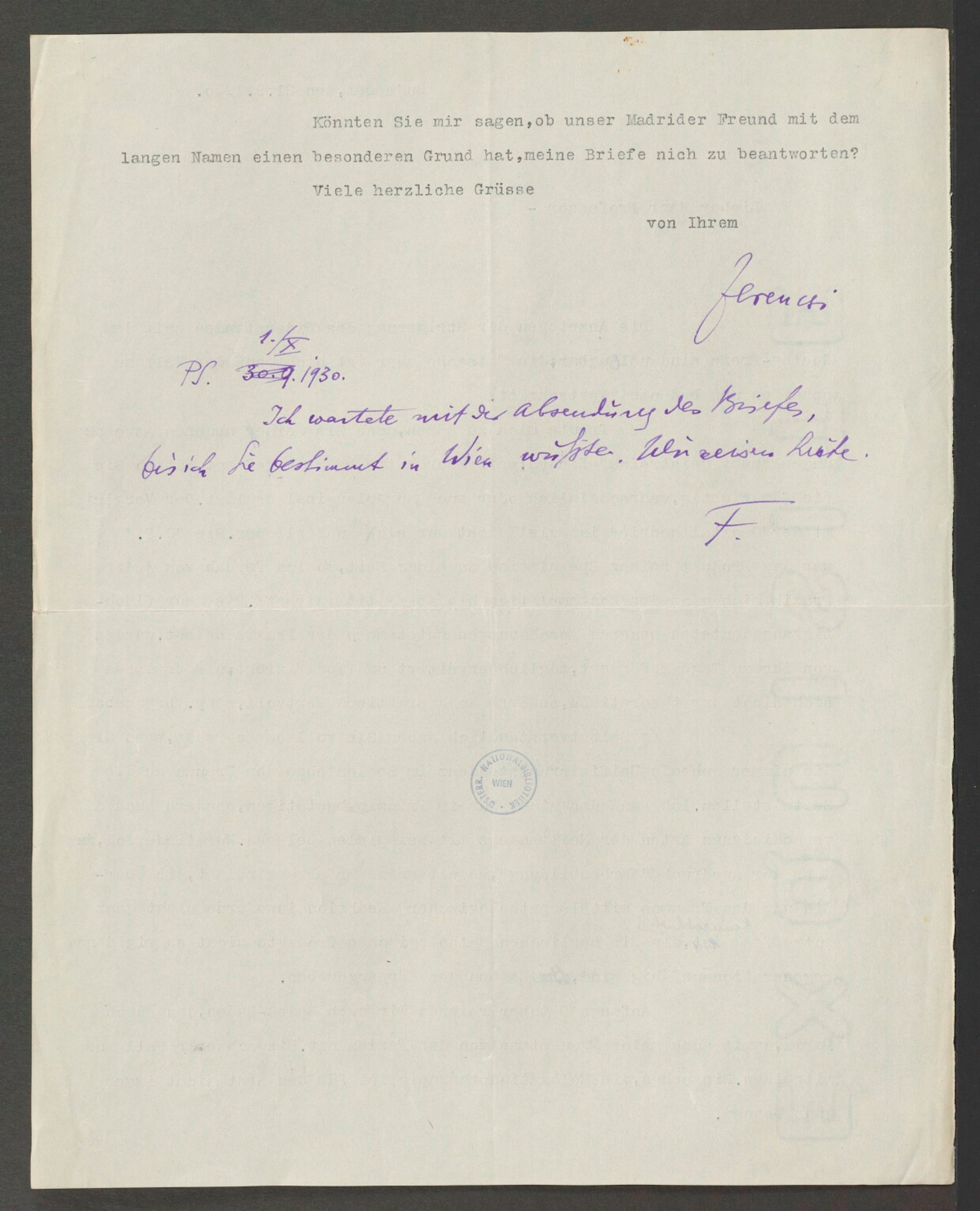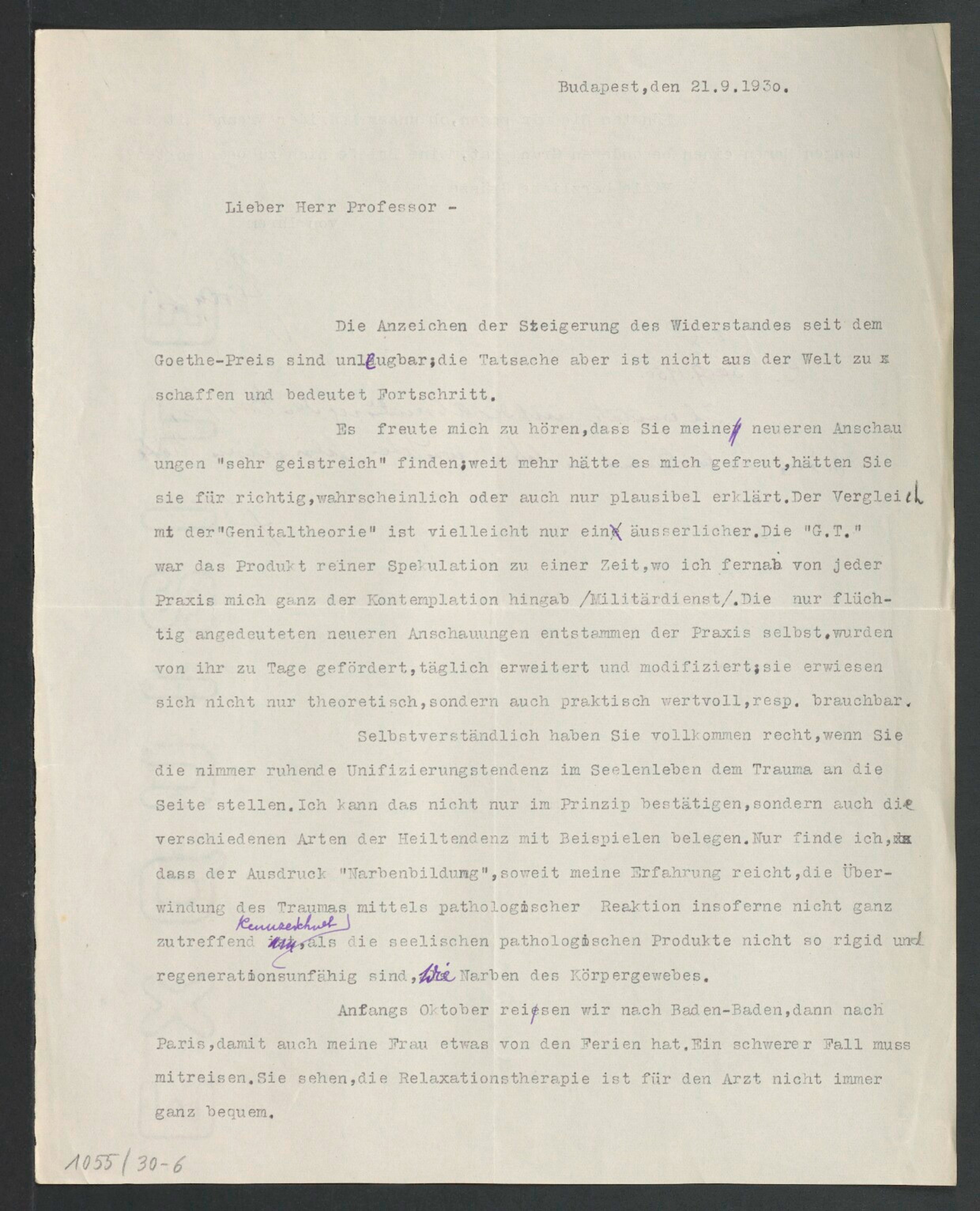 Freud, Sigmund, 1856-1939 [VerfasserIn] ; Ferenczi, Sándor, 1873-1933 [AdressatIn]