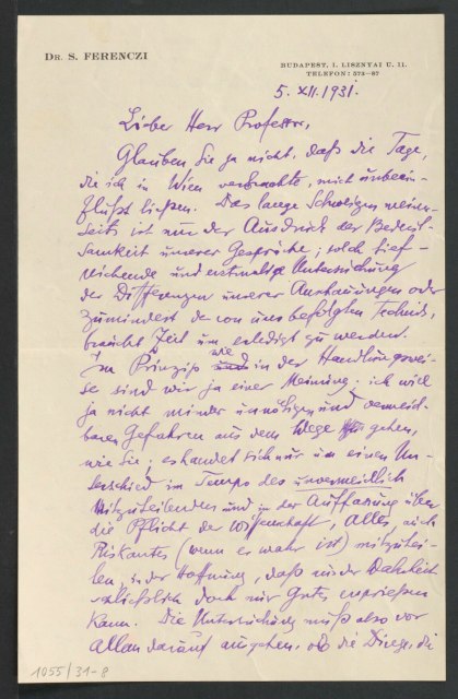 Freud, Sigmund, 1856-1939 [VerfasserIn] ; Ferenczi, Sándor, 1873-1933 [AdressatIn]