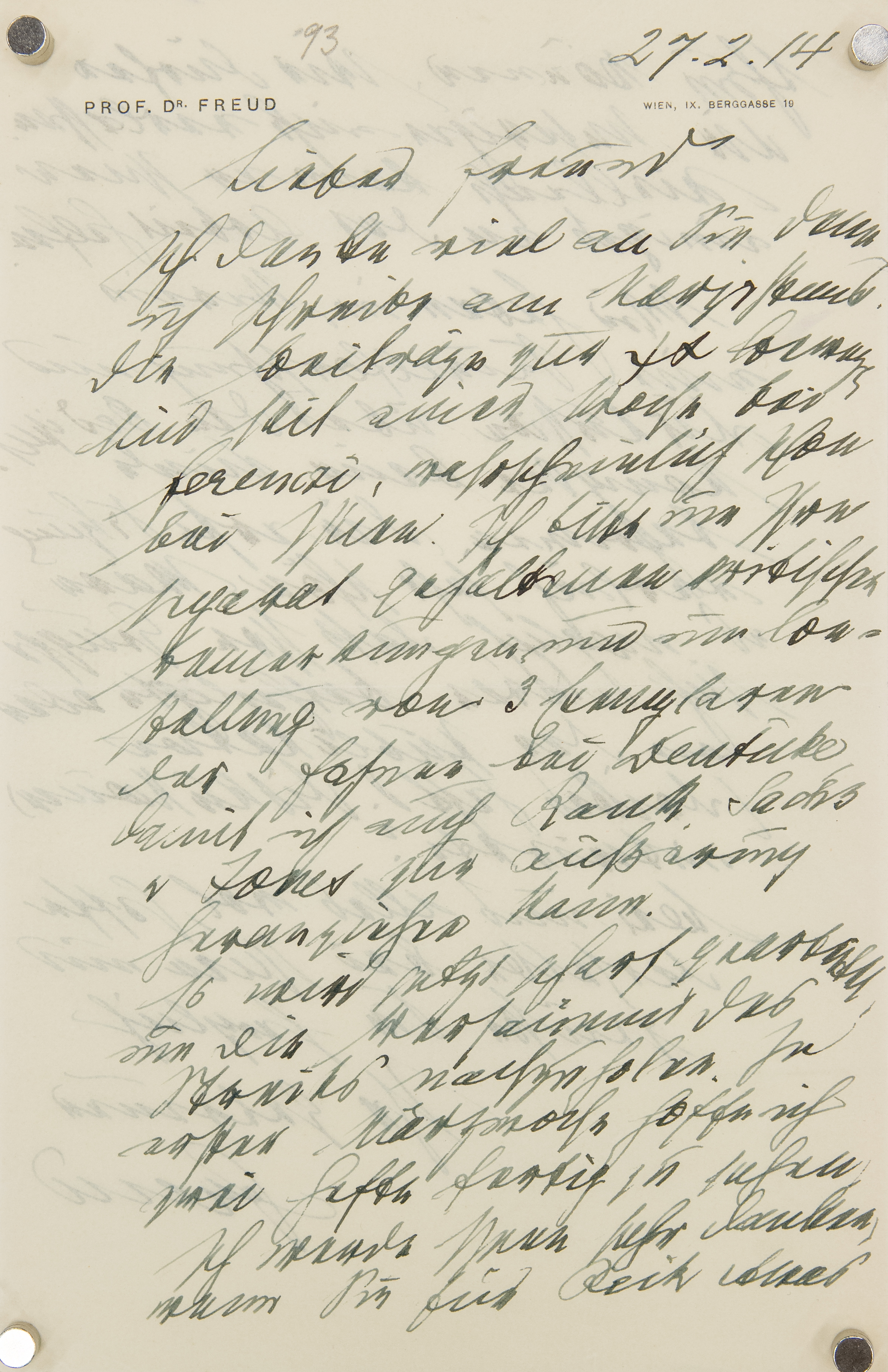 PROF. DR. FREUD WIEN, IX. BERGGASSE 19.Lieber Freund
