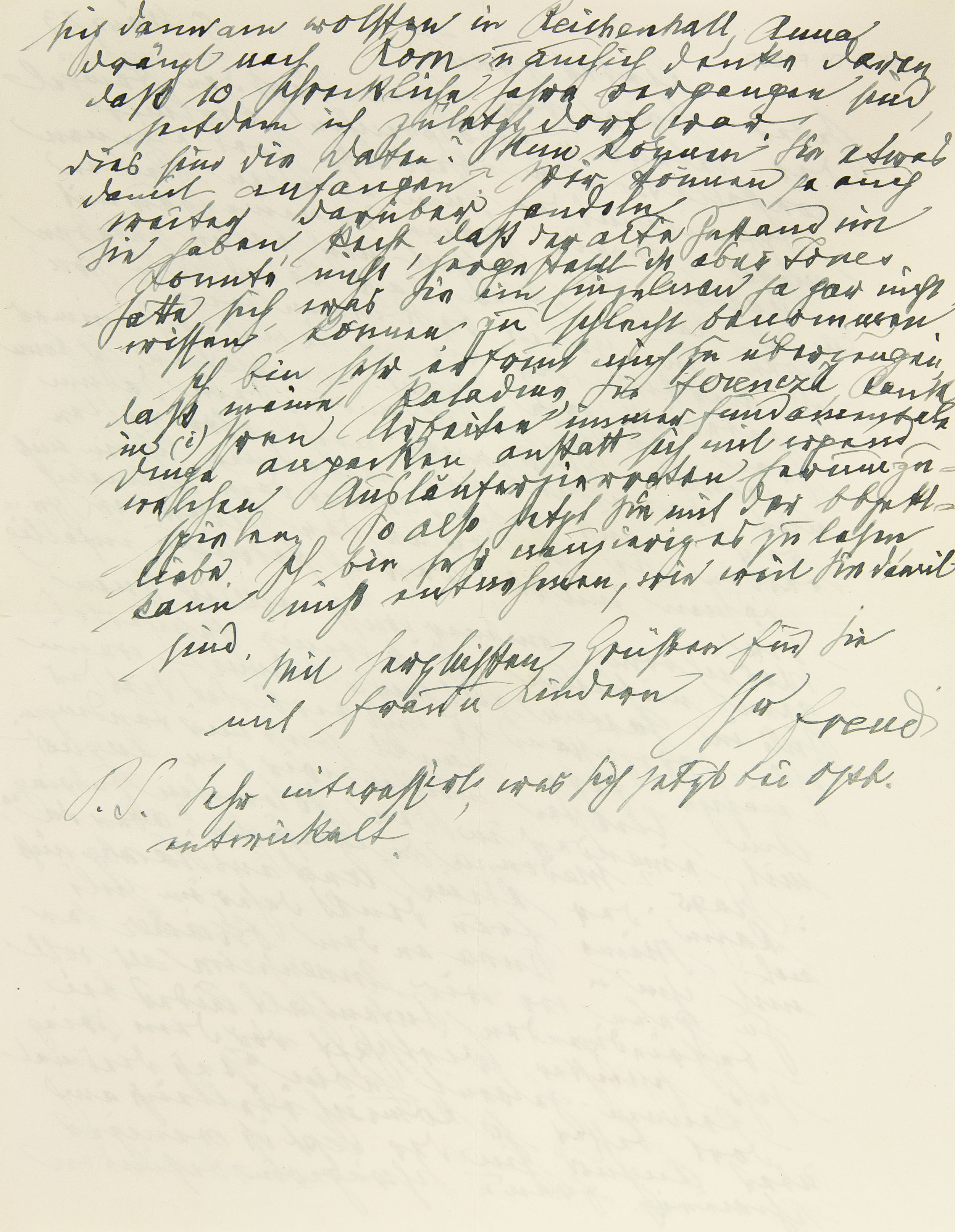 Ich bin sehr erfreut, mich zu überzeugen, daß meine Paladine, Sie, Ferenczi, Rank in (i)Ihren [sic] Arbeiten immer fundamentale Dinge anpacken, anstatt sich mit irgendwelchen Ausläuferzierraten herumzuspielen. So also jetzt Sie mit der Objektliebe. Ich bin sehr neugierig es zu lesen, kann nicht entnehmen, wie weit Sie damit sind.