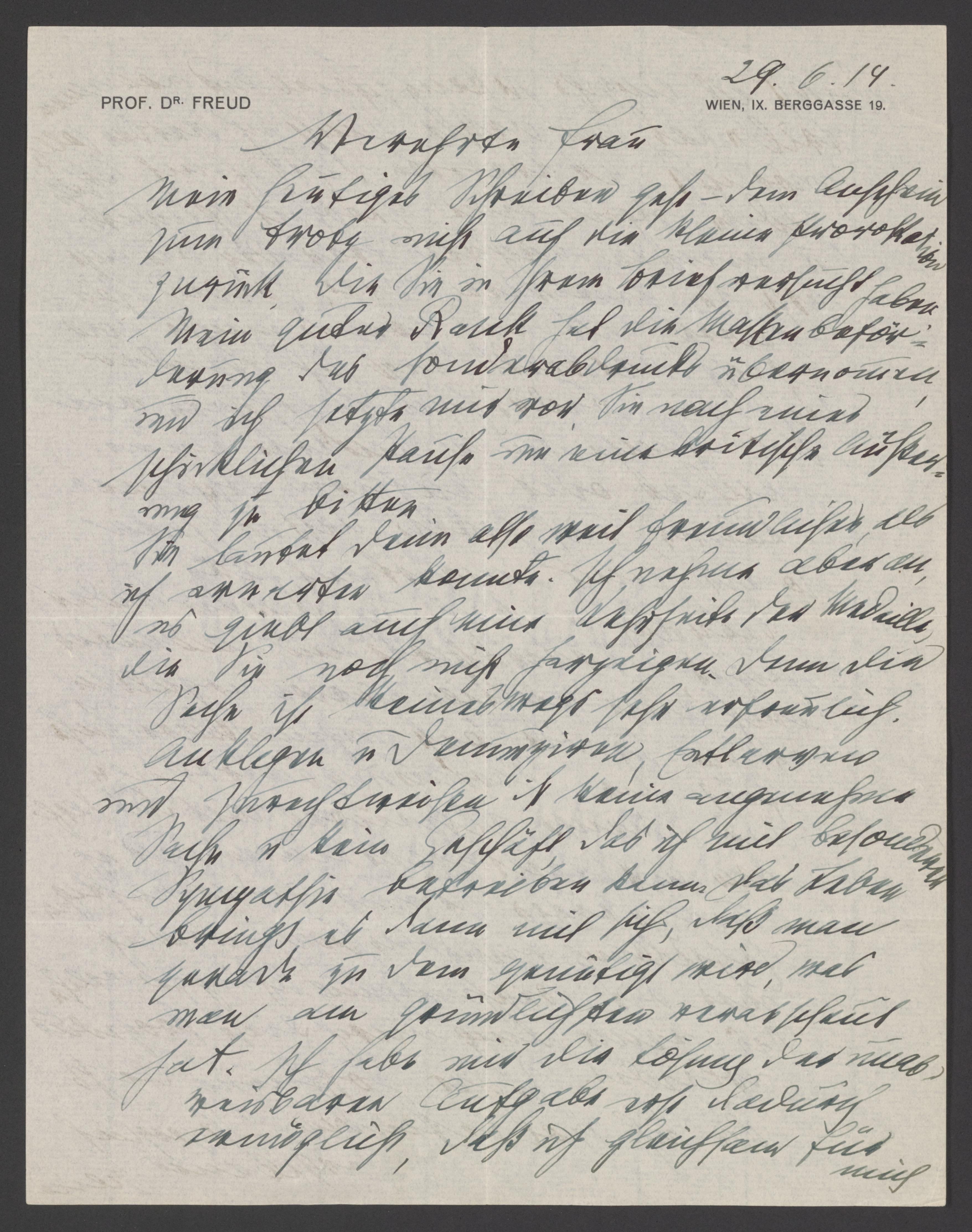Sigmund Freud Papers: General Correspondence, 1871-1996; Andreas-Salomé, Lou; From Freud; Originals; 1912-1915