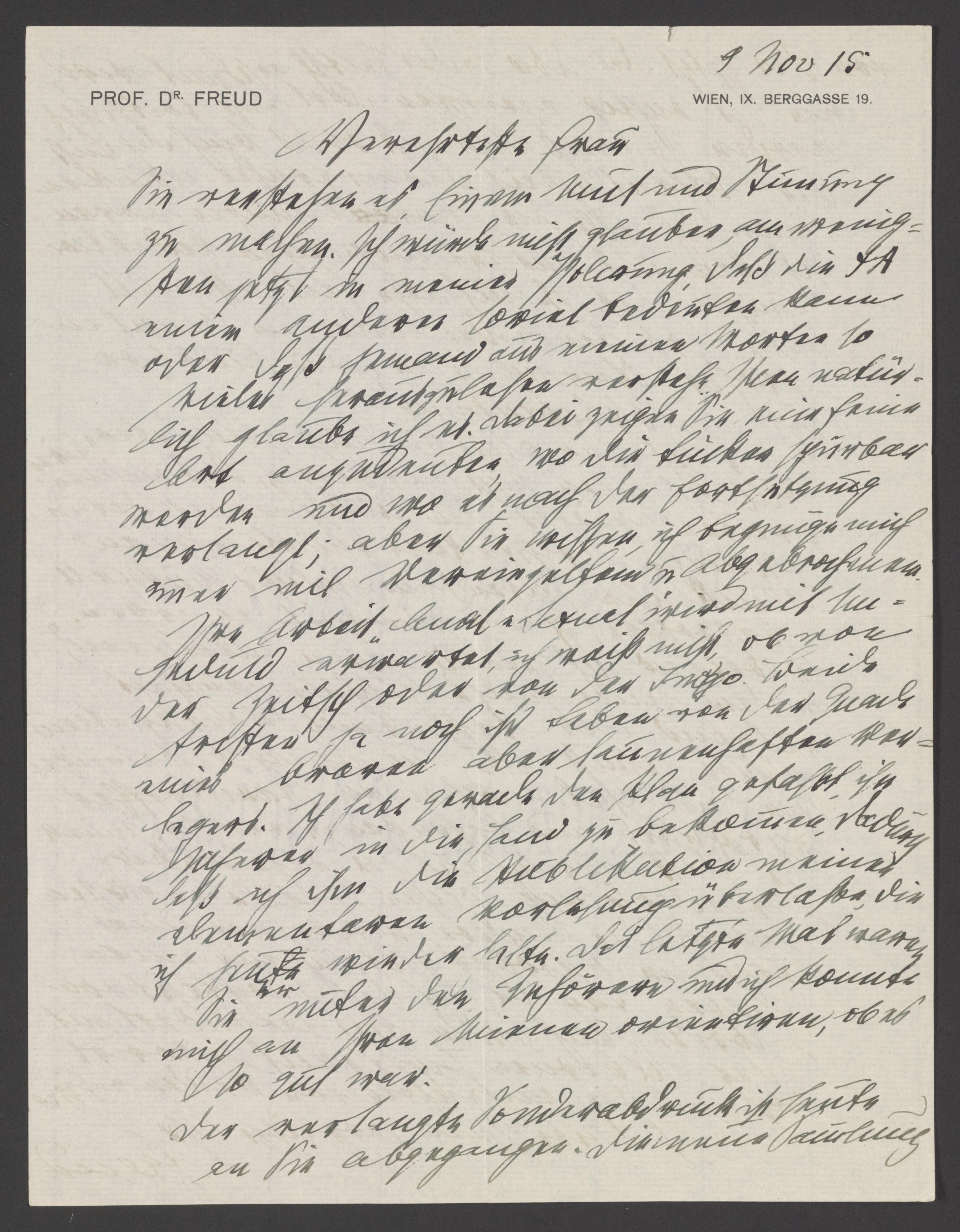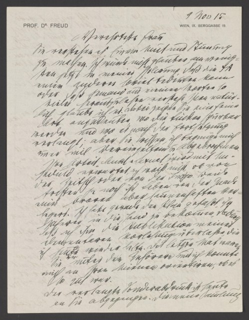 Sigmund Freud Papers: General Correspondence, 1871-1996; Andreas-Salomé, Lou; From Freud; Originals; 1912-1915