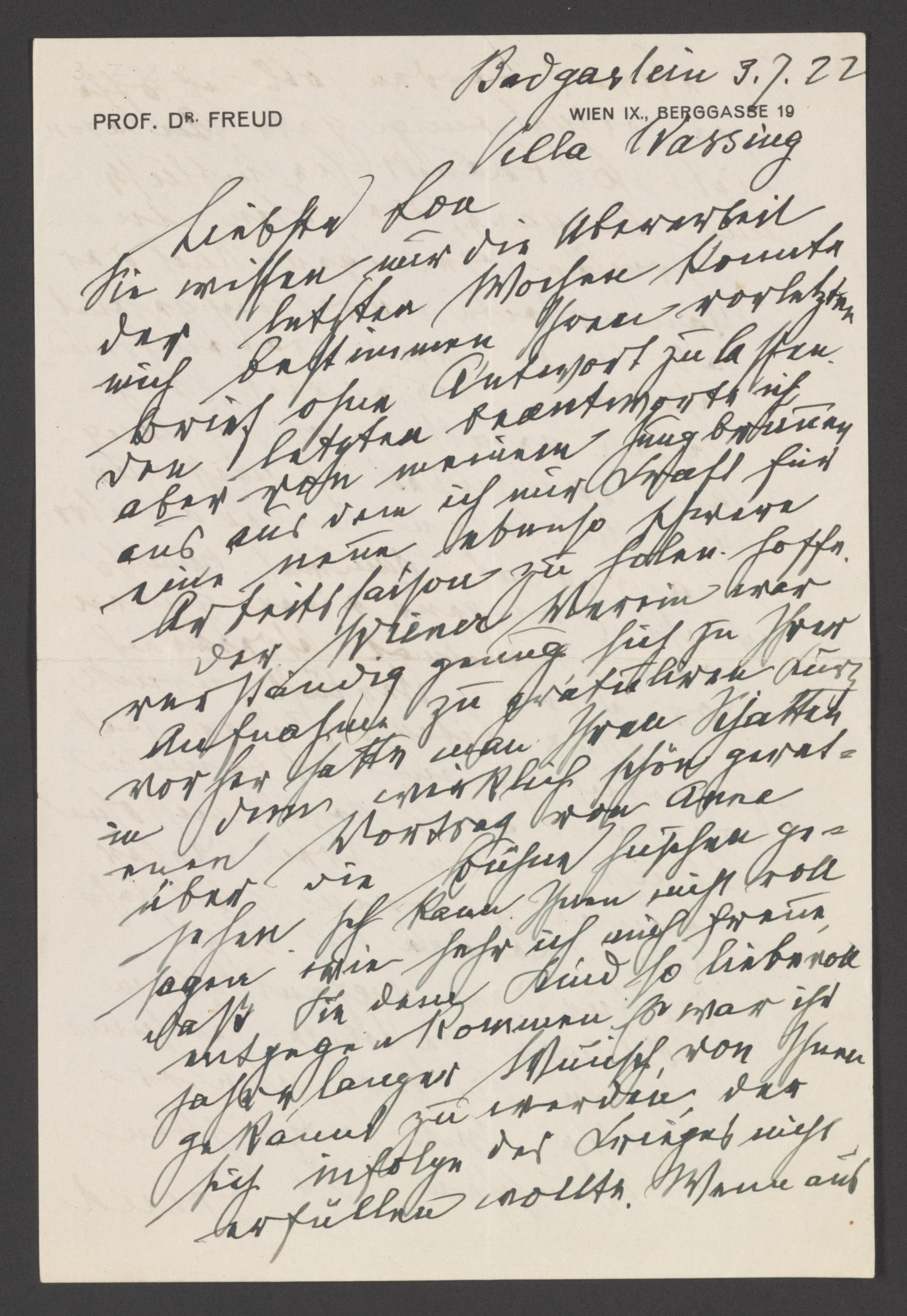 Sigmund Freud Papers: General Correspondence, 1871-1996; Andreas-Salomé, Lou; From Freud; Originals; 1919-1924