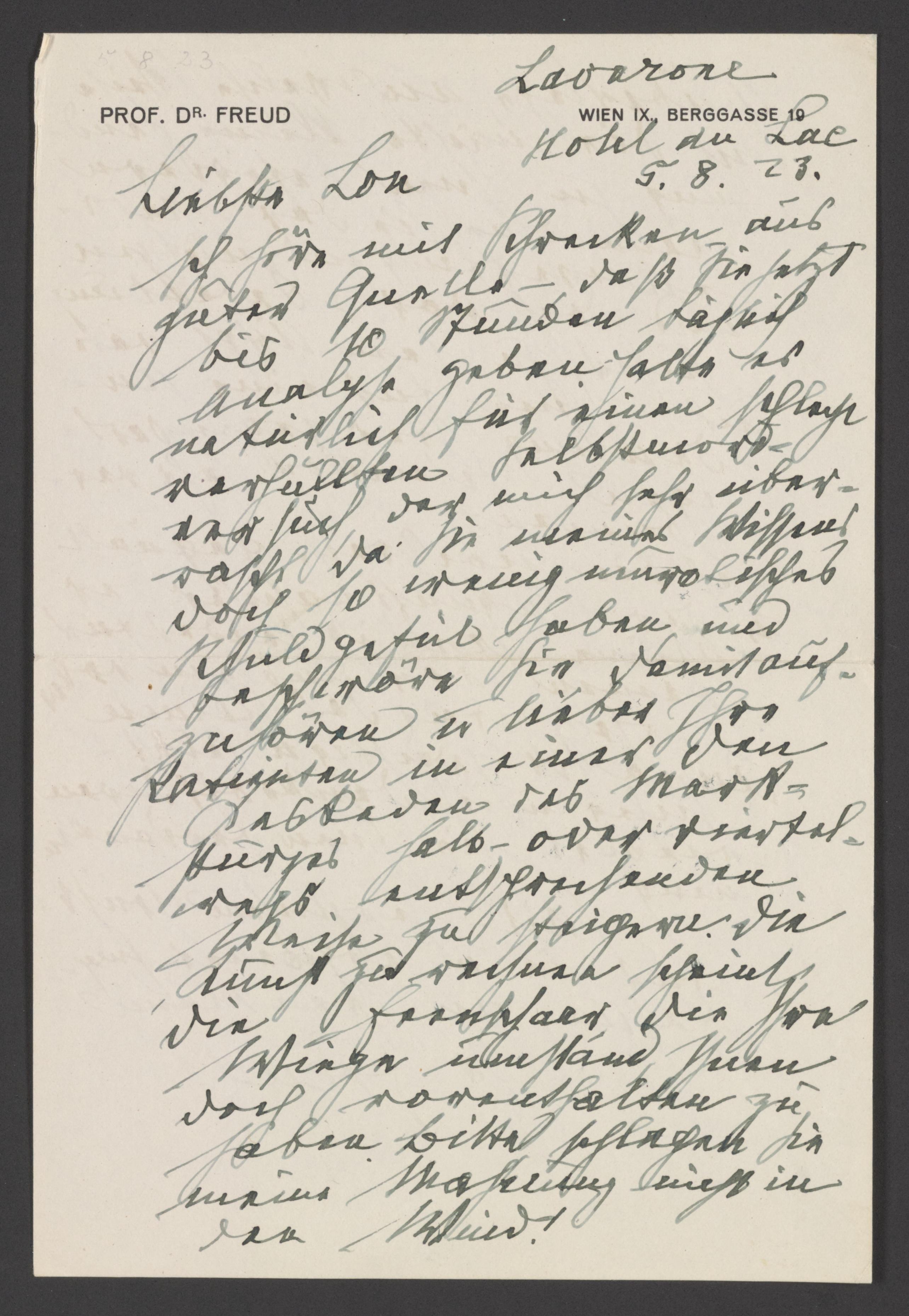 Sigmund Freud Papers: General Correspondence, 1871-1996; Andreas-Salomé, Lou; From Freud; Originals; 1919-1924