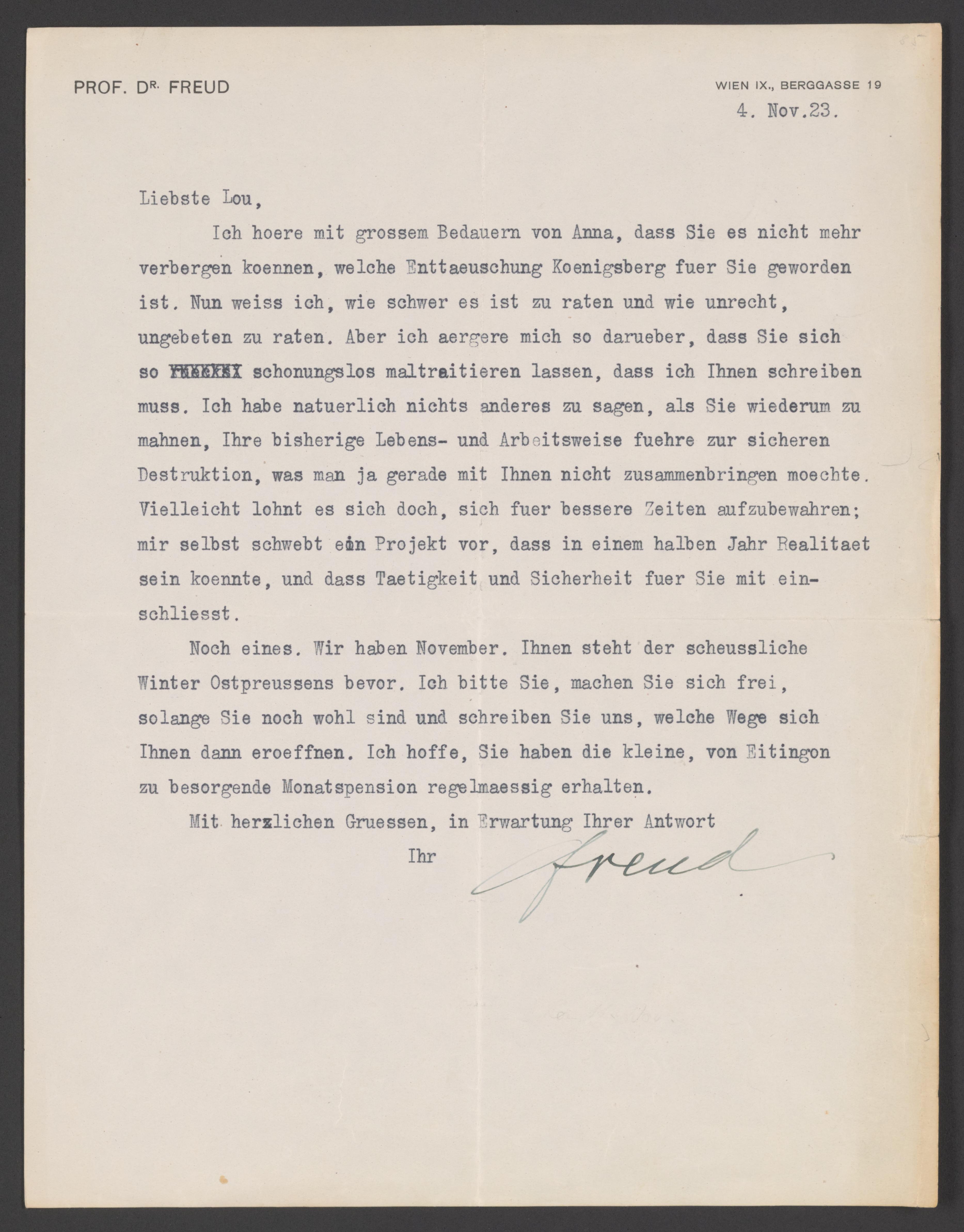 Sigmund Freud Papers: General Correspondence, 1871-1996; Andreas-Salomé, Lou; From Freud; Originals; 1919-1924