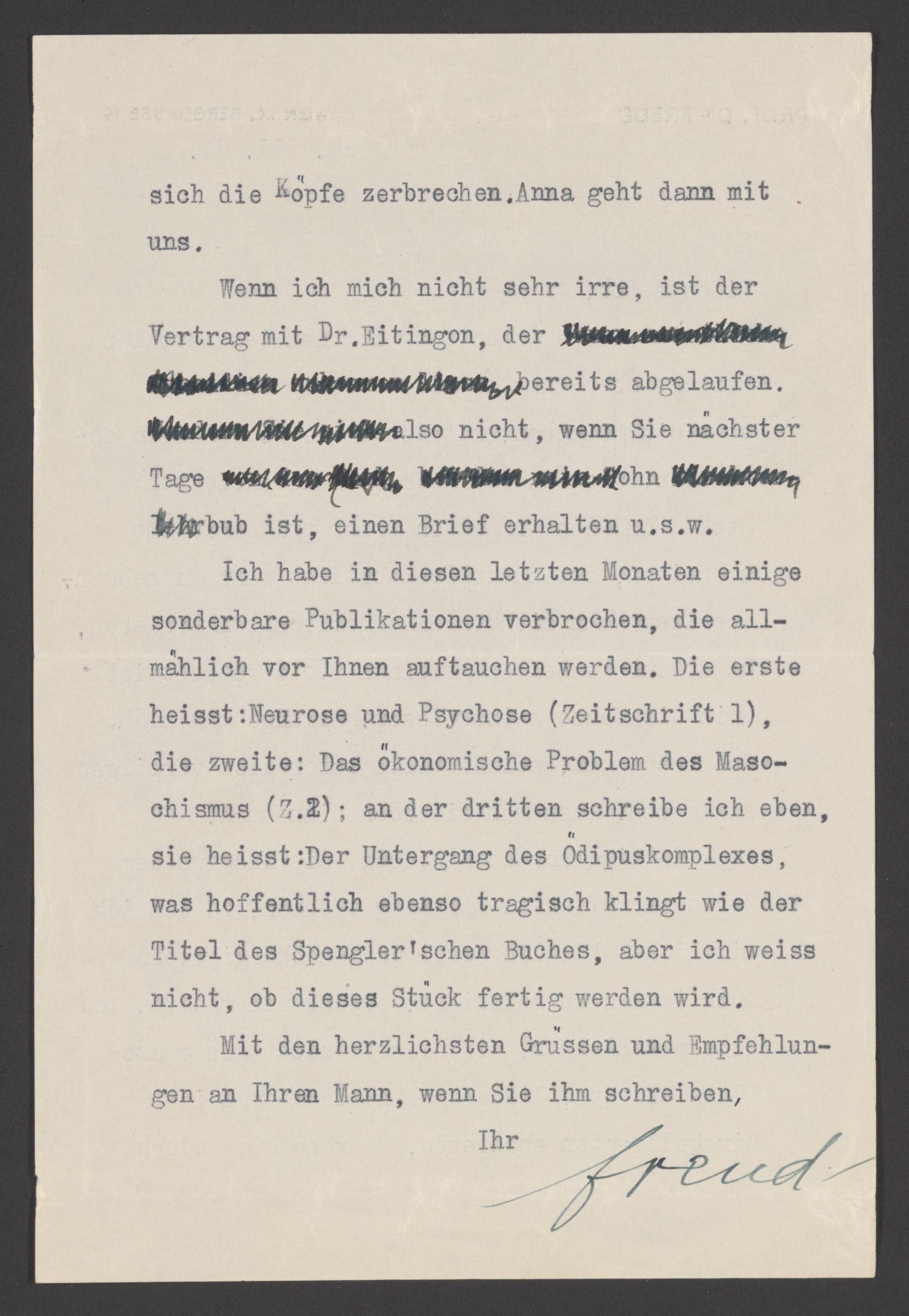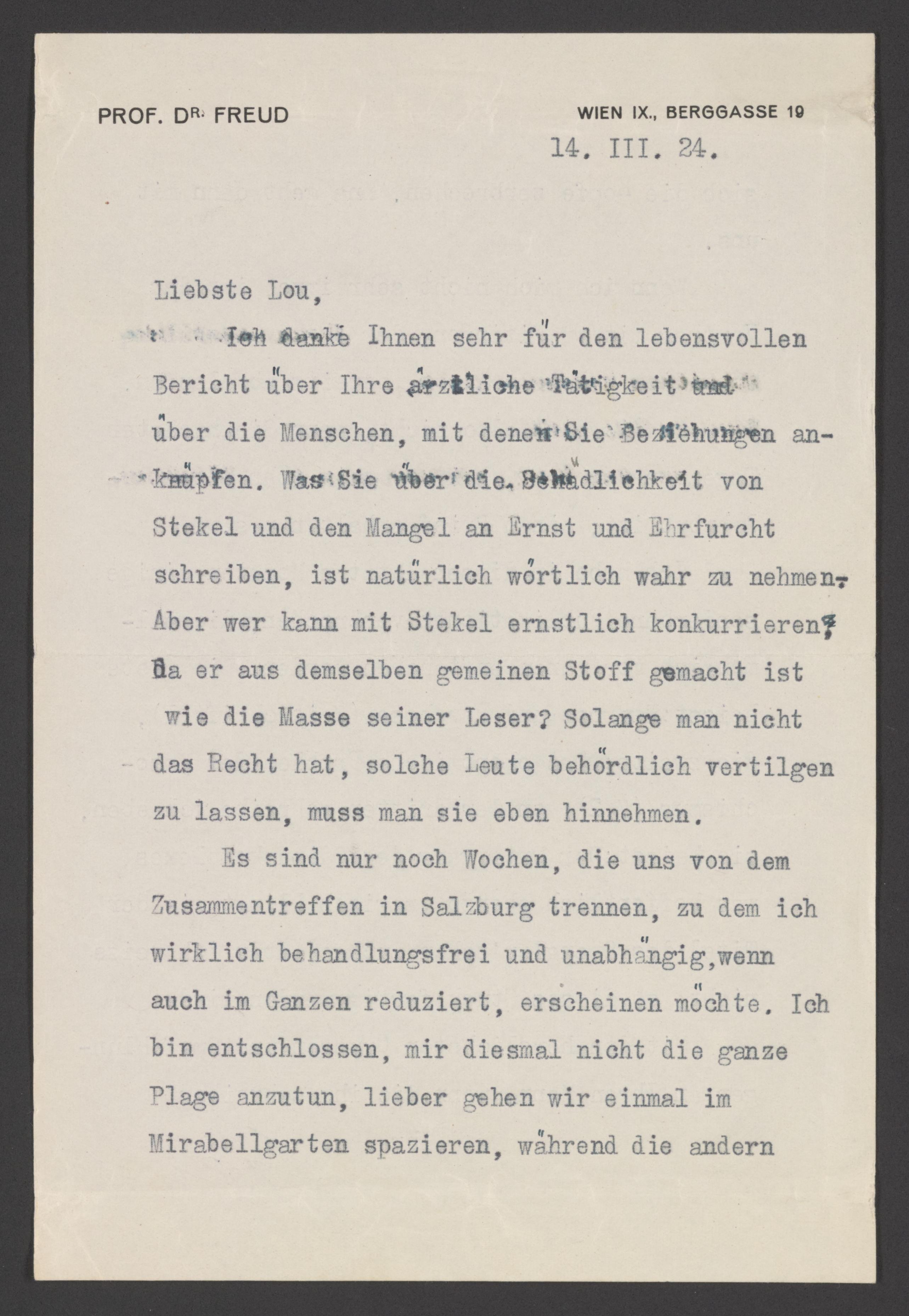 Sigmund Freud Papers: General Correspondence, 1871-1996; Andreas-Salomé, Lou; From Freud; Originals; 1919-1924