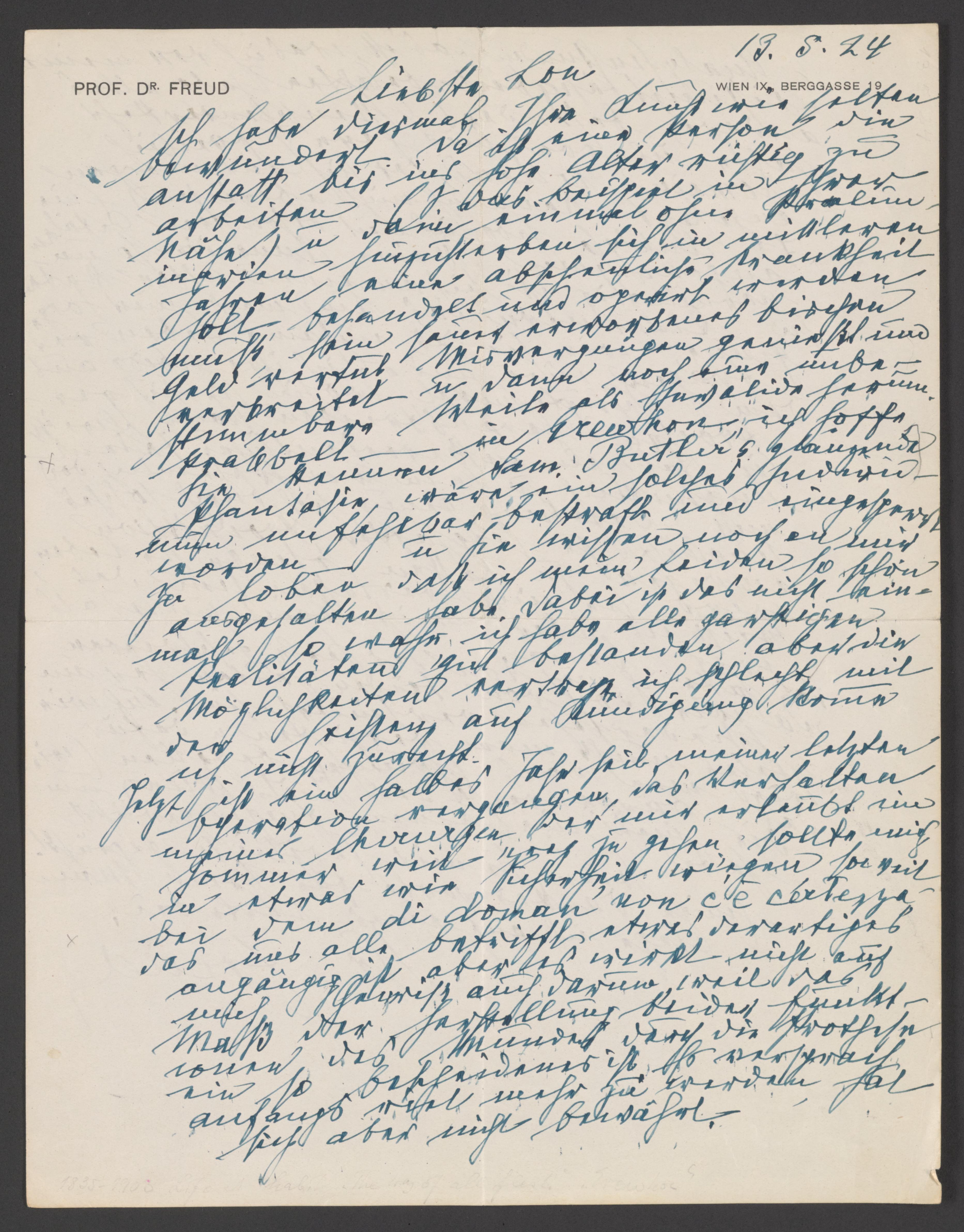 Sigmund Freud Papers: General Correspondence, 1871-1996; Andreas-Salomé, Lou; From Freud; Originals; 1919-1924