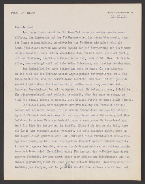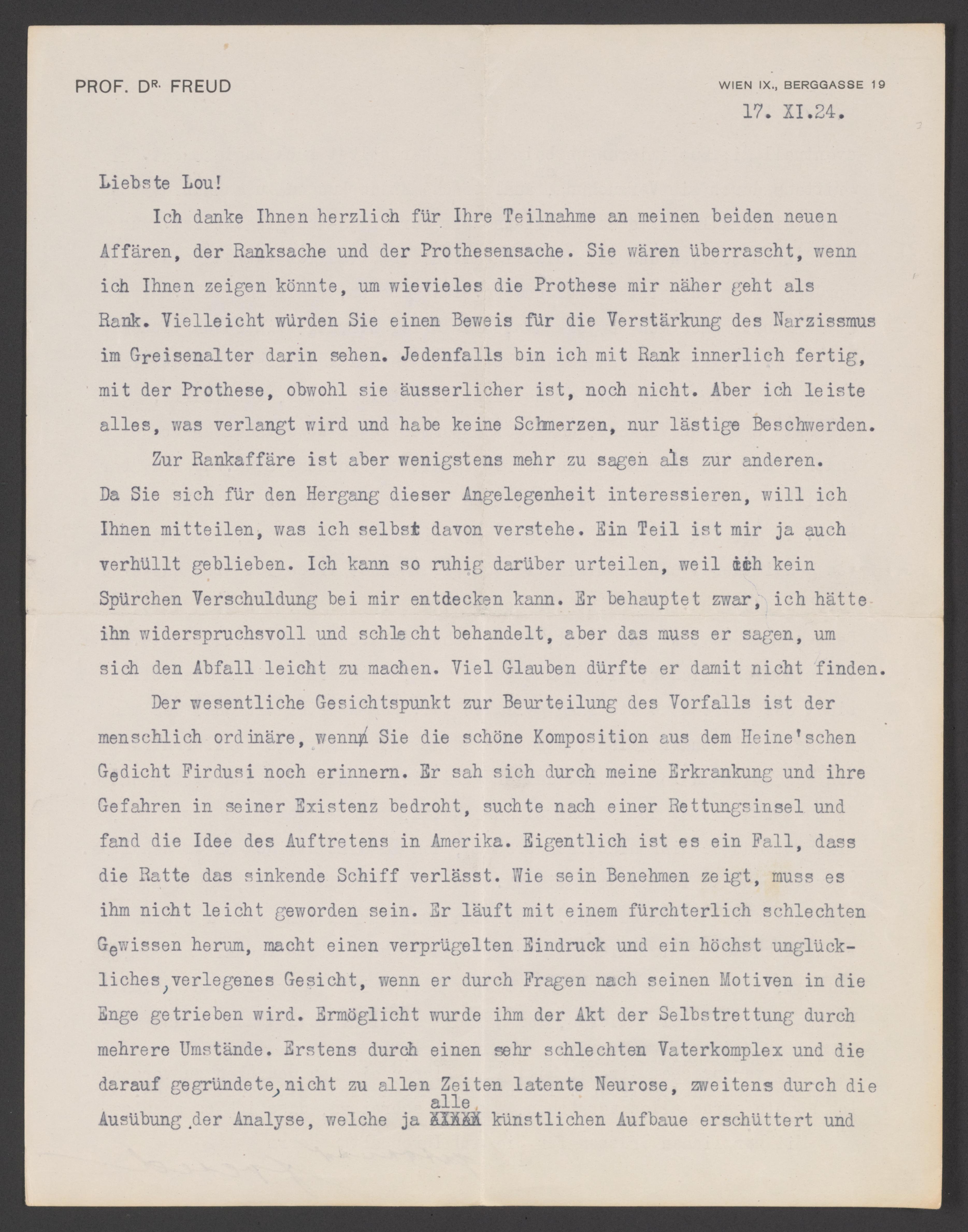 Sigmund Freud Papers: General Correspondence, 1871-1996; Andreas-Salomé, Lou; From Freud; Originals; 1919-1924