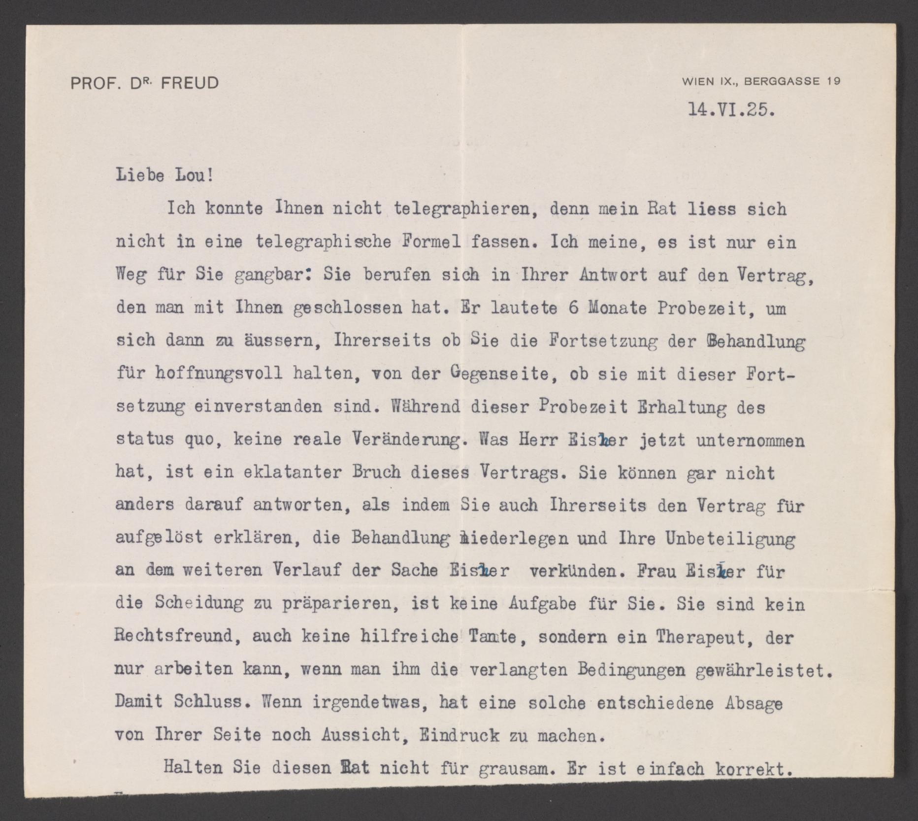 Sigmund Freud Papers: General Correspondence, 1871-1996; Andreas-Salomé, Lou; From Freud; Originals; 1925-1936