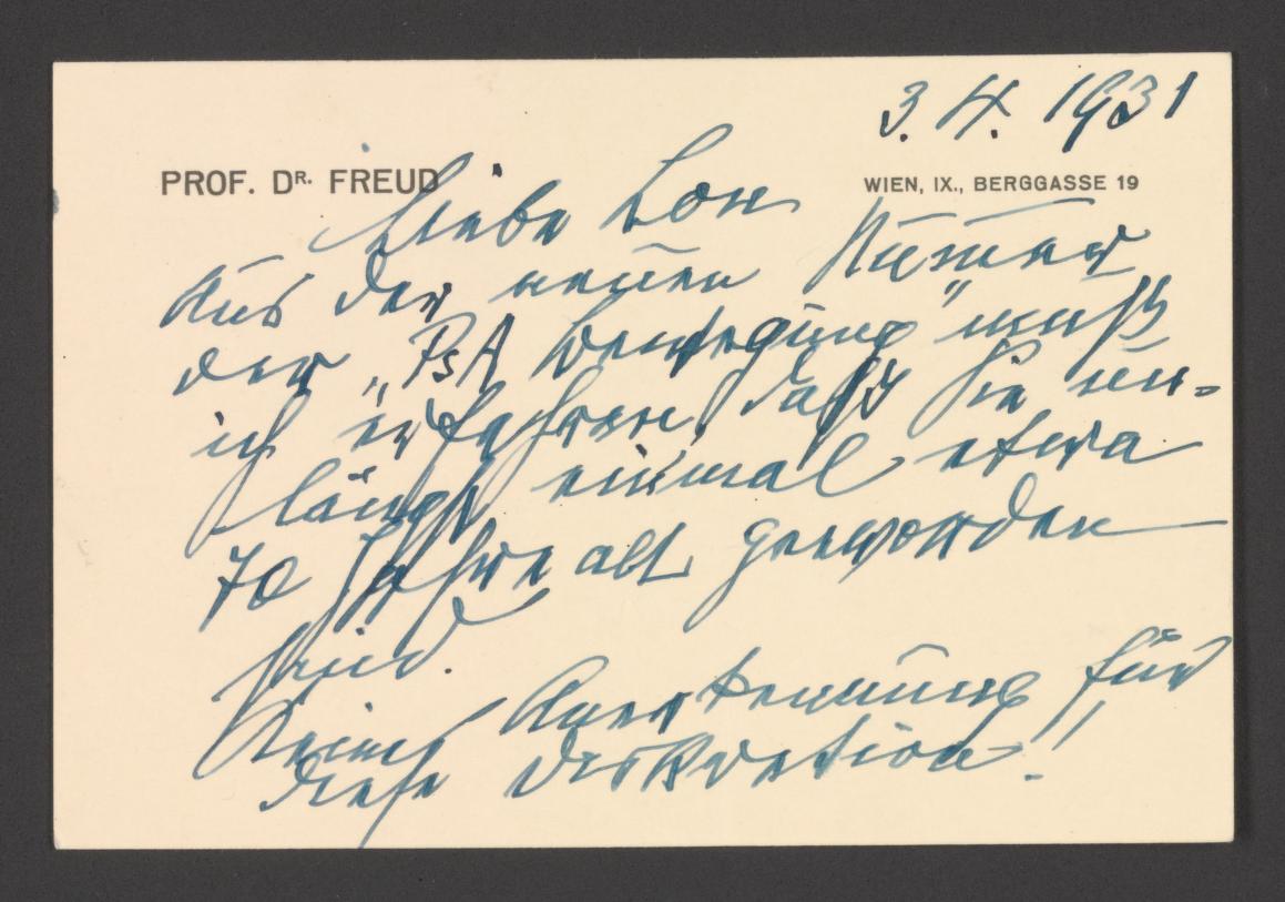 Sigmund Freud Papers: General Correspondence, 1871-1996; Andreas-Salomé, Lou; From Freud; Originals; 1925-1936