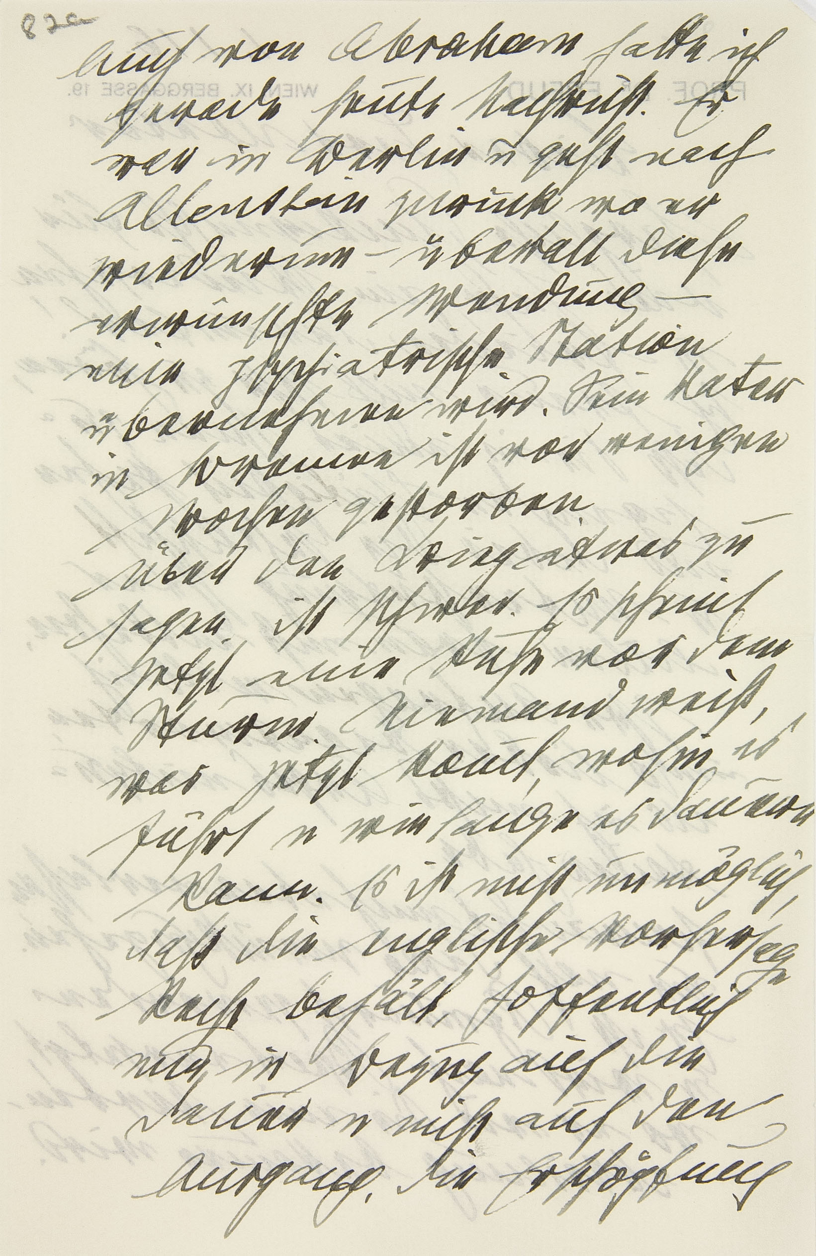 Ferenczi hat mich eben verlassen, um nach Pápa zurückzugehen. Er ist Regimentsarzt geworden und wird nach Budapest versetzt, wo er wie Sie eine Nervenabteilung bekommen wird. Auch von Abraham hatte ich gerade heute Nachricht. Er war in Berlin und geht nach Allenstein zurück, wo er wiederum – überall diese erwünschte Wendung – eine psychiatrische Station übernehmen wird. Sein Vater in Bremen ist vor wenigen Wochen gestorben.