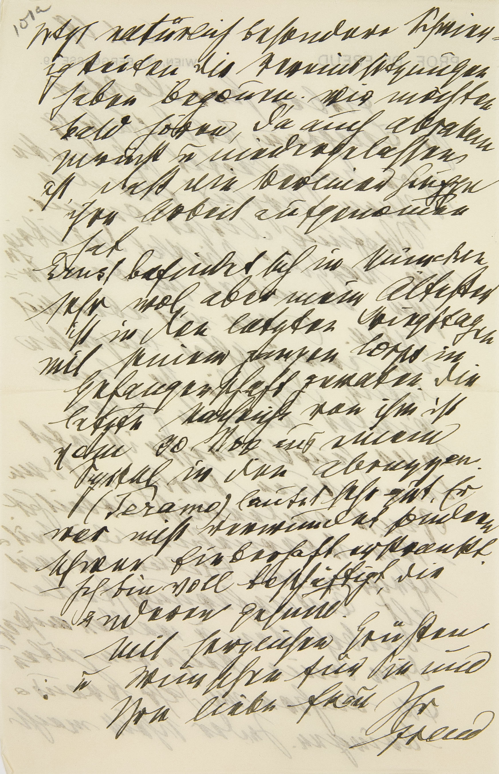 Ernst befindet sich in München sehr wohl, aber mein Ältester ist in den letzten Kriegstagen mit seinem ganzen Corps in Gefangenschaft geraten. Die letzte Nachricht von ihm ist vom 30. Nov. aus einem Spital in den Abruzzen (Teramo), lautet sehr gut. Er war nicht verwundet, sondern schwer fieberhaft erkrankt. Ich bin voll beschäftigt, die anderen gesund.