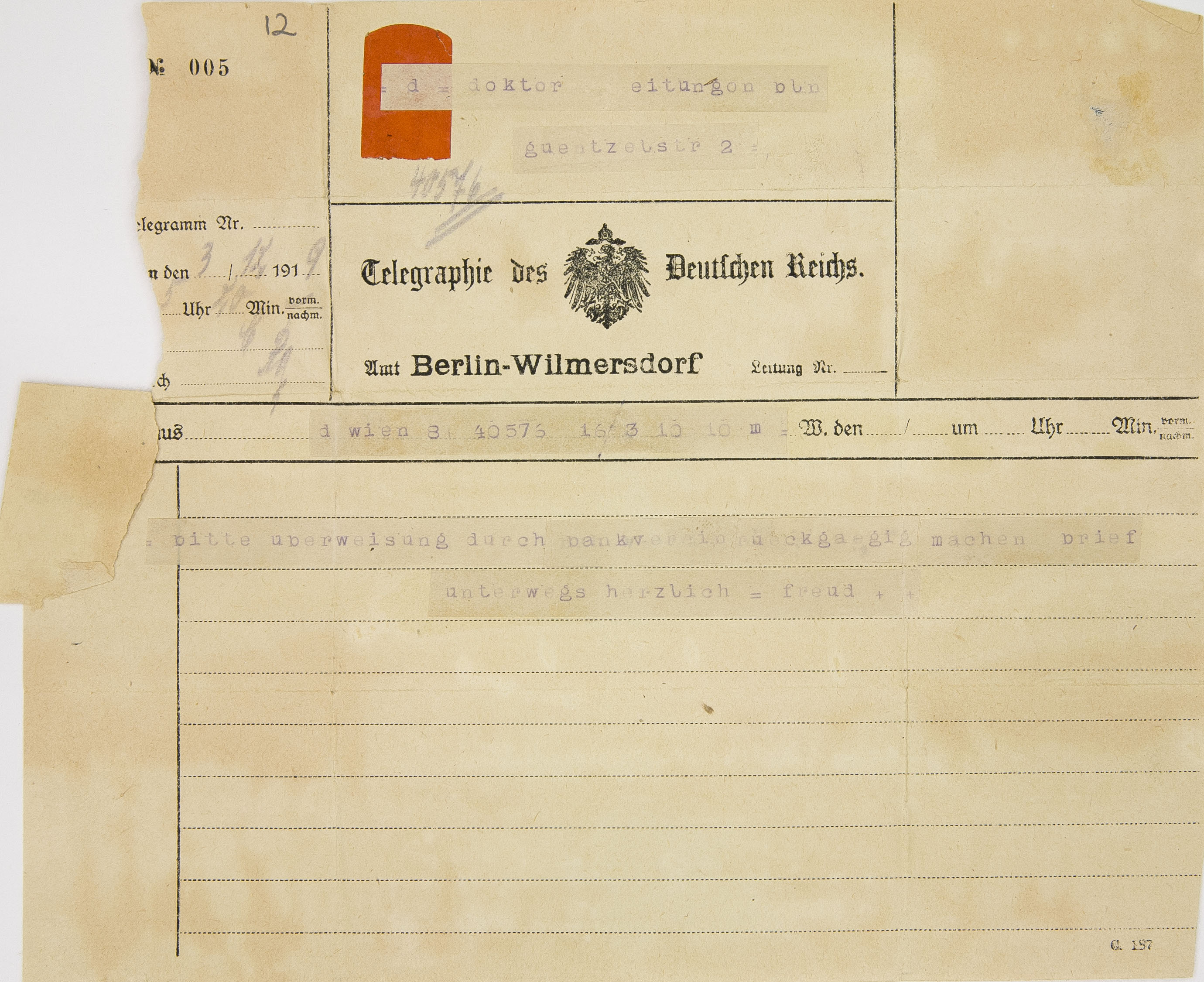 Sigmund Freud Papers: General Correspondence, 1871-1996; Eitingon, M.; From Freud; 1919